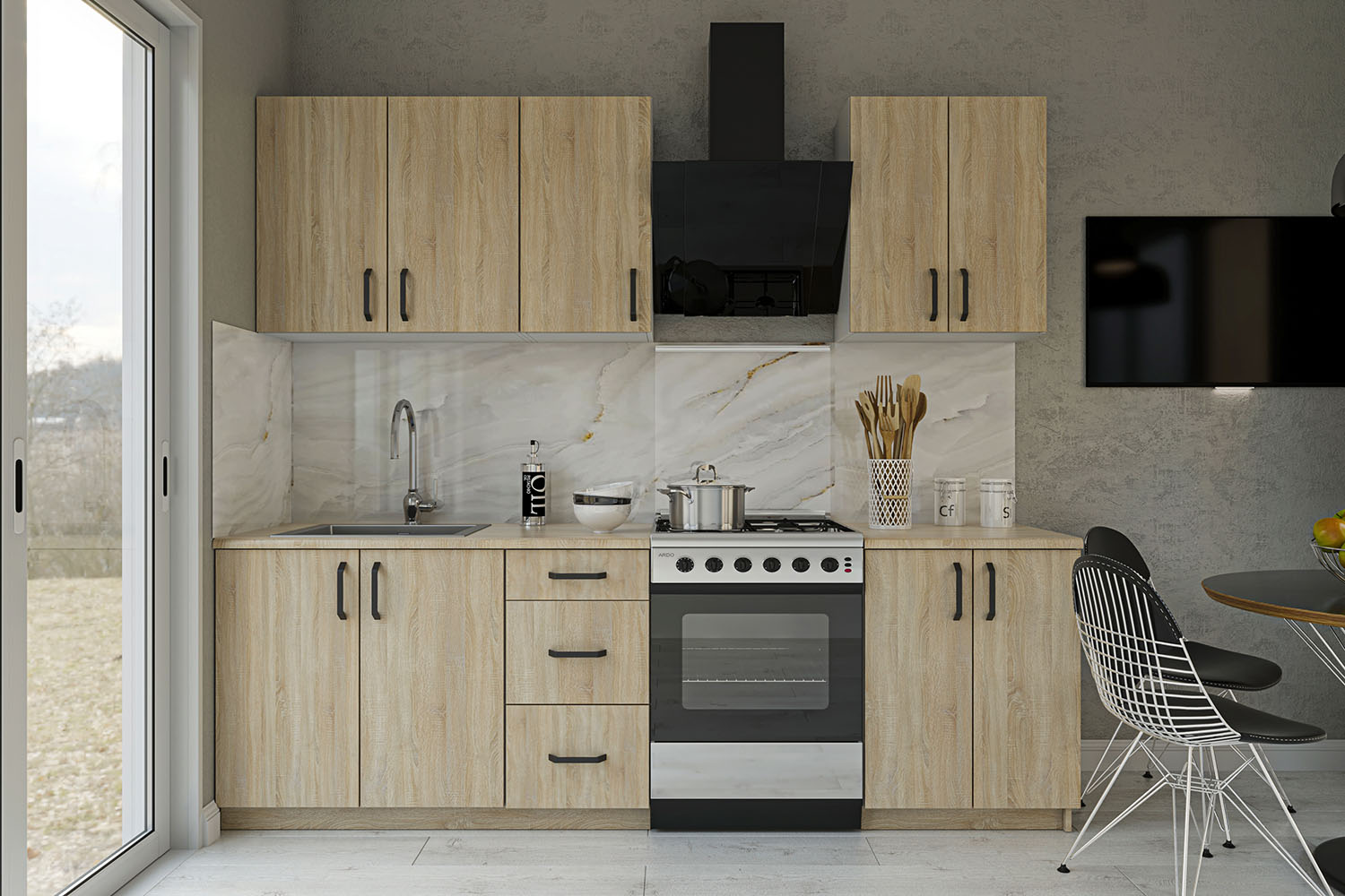 • Ένα ντουλάπι νεροχύτη, σε σονόμα απόχρωση 80x48x82cm.