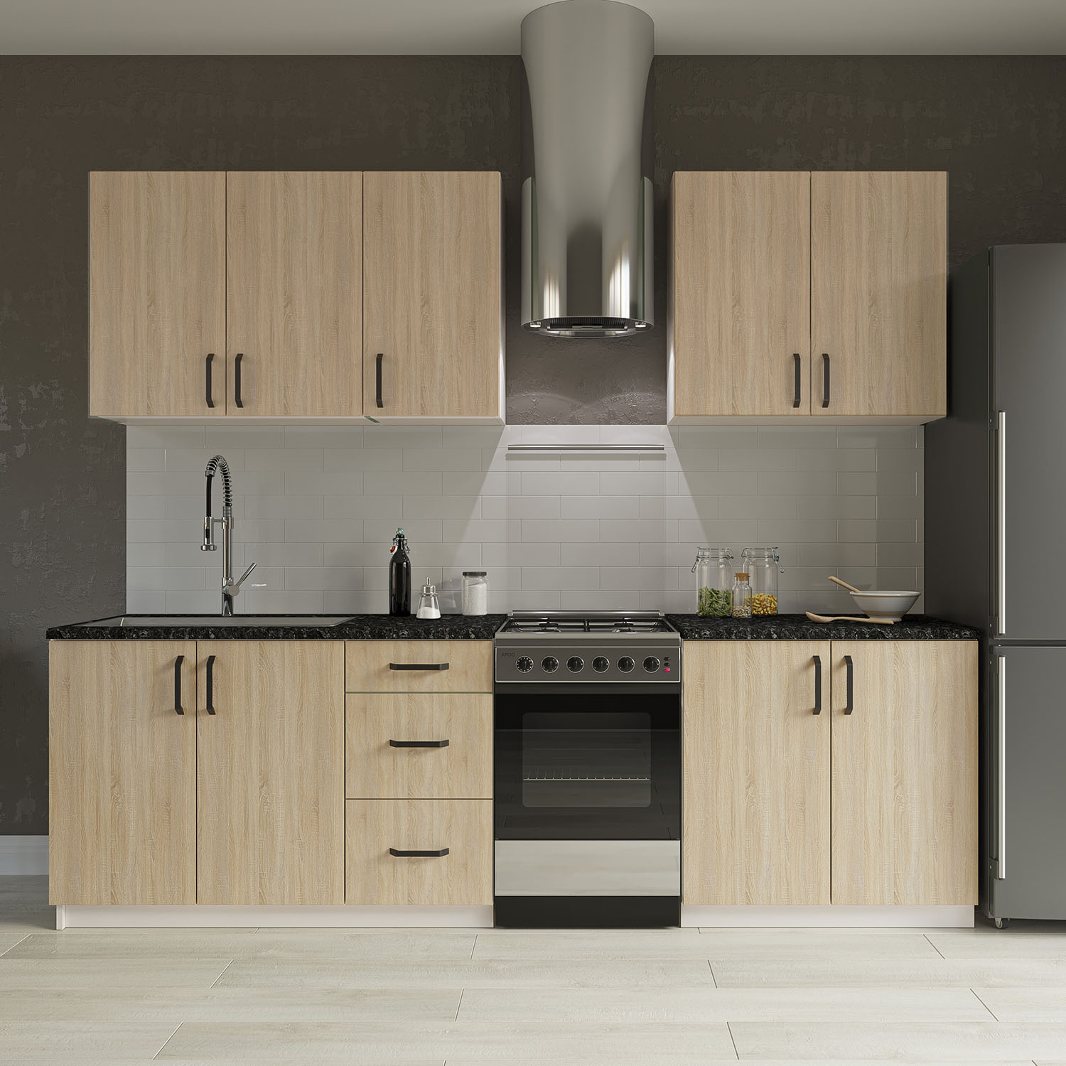 Κουζίνα Rene, Modest, Σετ Έξι Τεμαχίων, Ευρωπαϊκής Κατασκευής, εξαιρετικής ποιότητας και υψηλής αντοχής, σε Σονόμα απόχρωση.