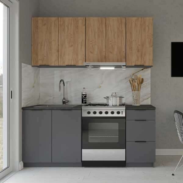 Κουζίνα Samos Craft, Σετ Πέντε Τεμαχίων, Ευρωπαϊκής Κατασκευής, εξαιρετικής ποιότητας και υψηλής αντοχής, σε απόχρωση Γραφίτη-Χρυσό Δρυς.