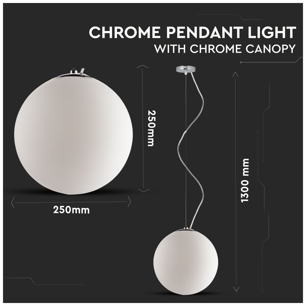 Κρεμαστό Φωτιστικό V-TAC Γυαλί Σφαίρα με Χρώμιο και ντουί Ε27