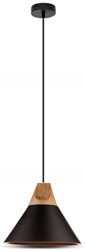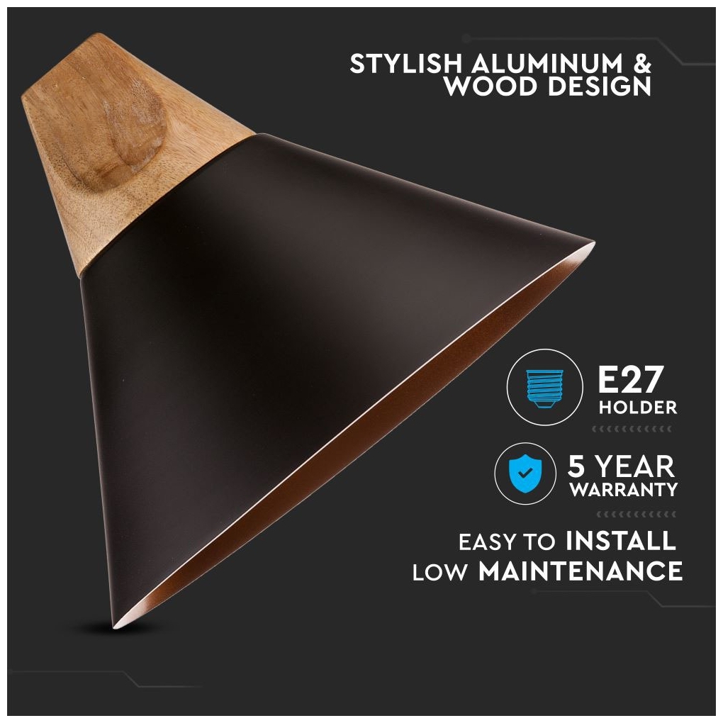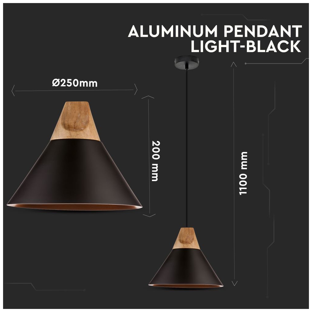 Κρεμαστό Φωτιστικό V-TAC Καπέλο Κώνος Αλουμίνιο Μαύρο με Ξύλινη Βάση και ντουί Ε27 Ф260