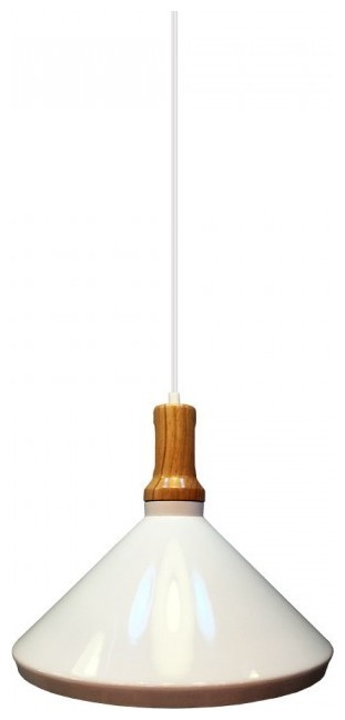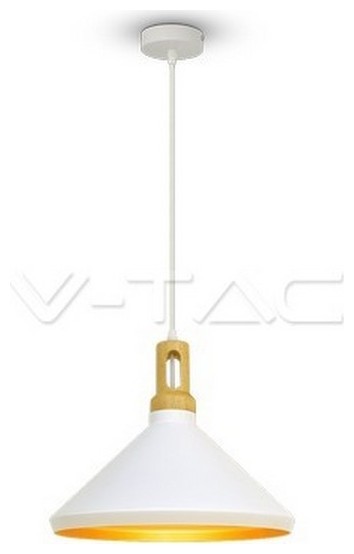 Κρεμαστό Φωτιστικό V-TAC Μεταλλικό Κωνική Καμπάνα Λευκό με Ξύλινη Βάση και ντουί Ε27 Ф350