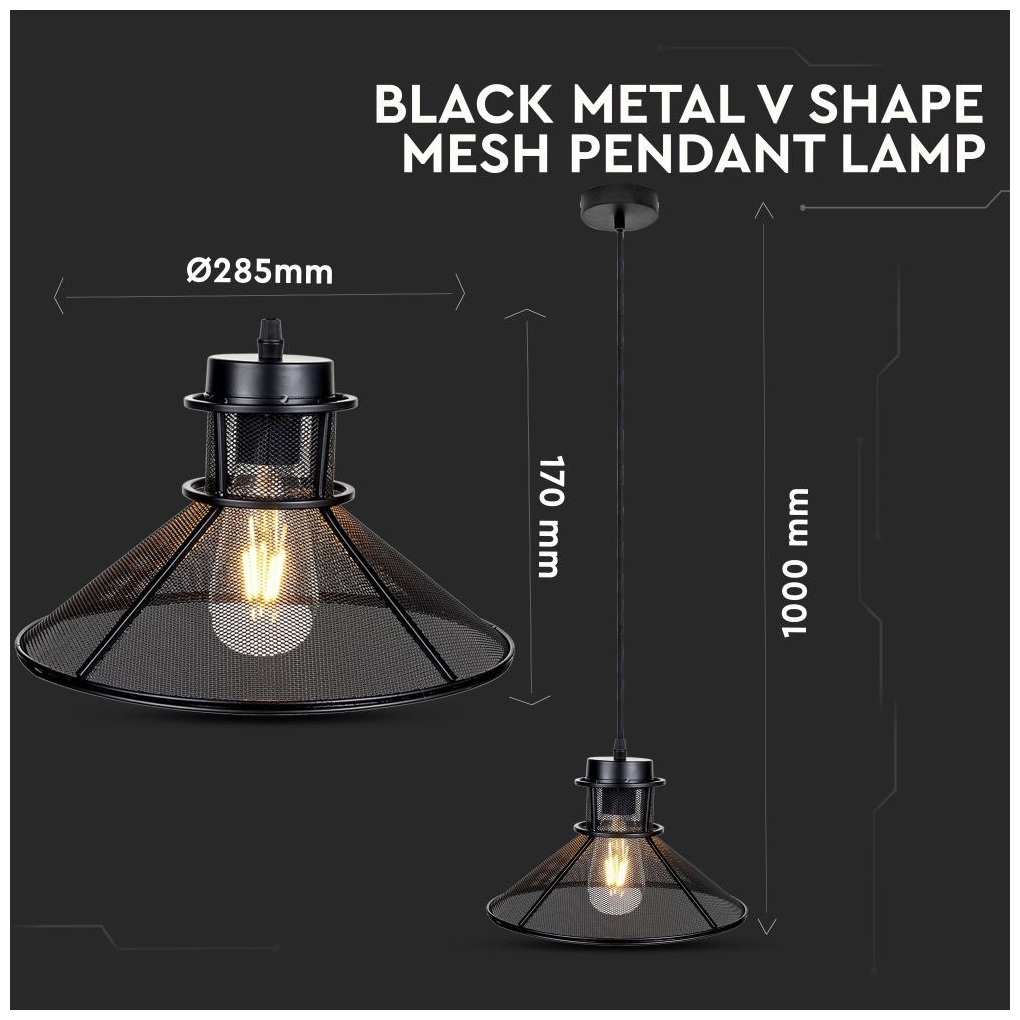 Κρεμαστό Φωτιστικό V-TAC Μεταλλικό Πλέγμα Καπέλο Μαύρο Μάτ με ντουί Ε27