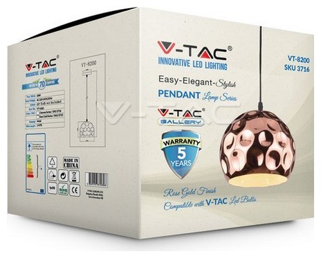 Κρεμαστό Φωτιστικό V-TAC ROSE GOLD Χαλκός με ντουί Ε27 Ф200