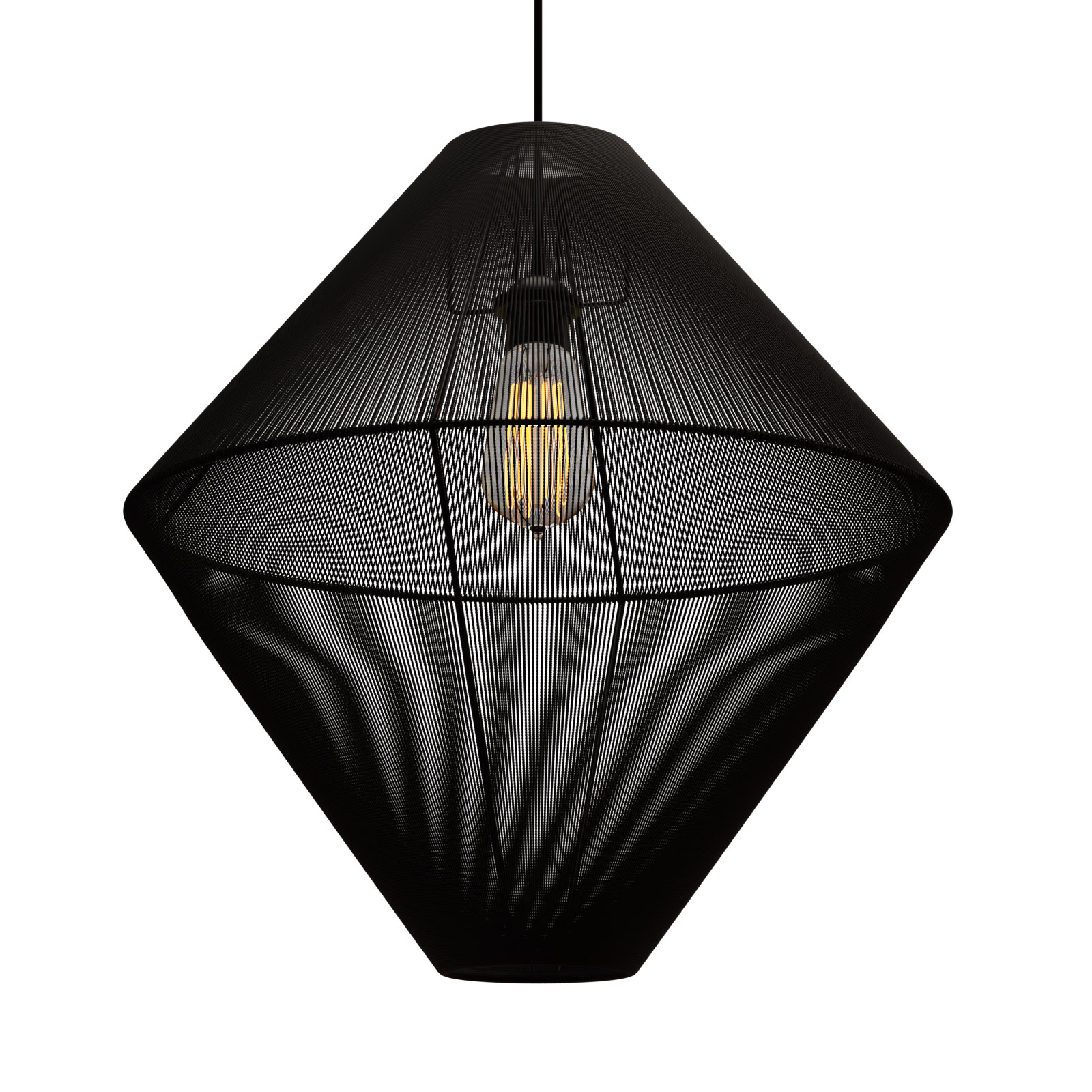 Κρεμαστό, Μονόφωτο φωτιστικό, κατασκευασμένο από μέταλλο και κλωστή, σε μαύρη απόχρωση.