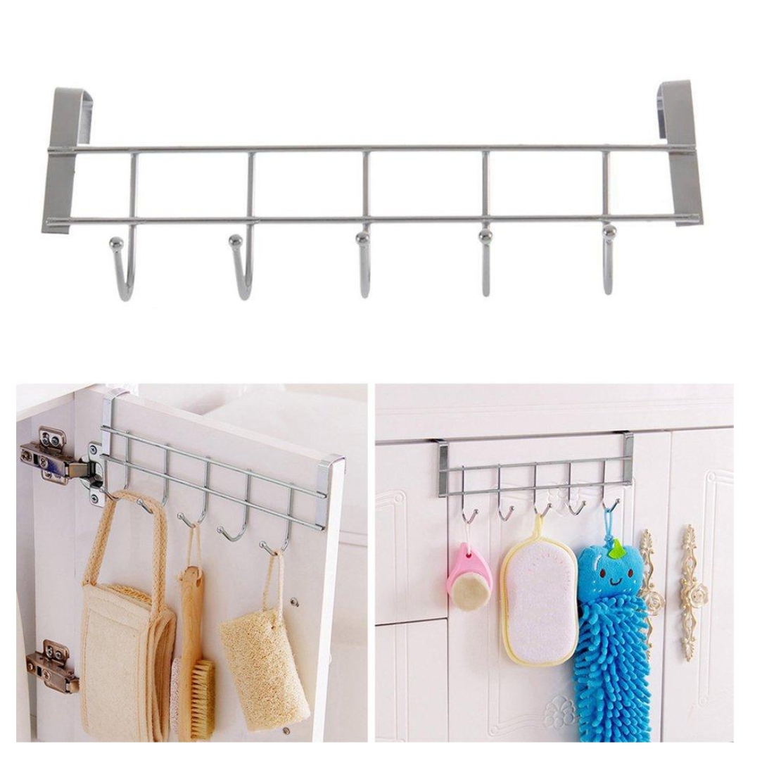 Κρεμάστρα ντουλαπιών, κατασκευασμένη από μέταλλο. Διαθέτει 5 γαντζάκια για να τοποθετήσετε τα σκεύη και τα πετσετάκια της κουζίνας σας. Κατάλληλη επιλογή για την κουζίνα ή την ντουλάπα σας. Διαστάσεις 24x9cm.