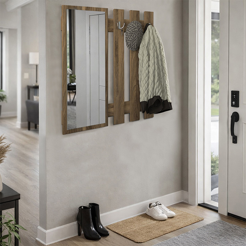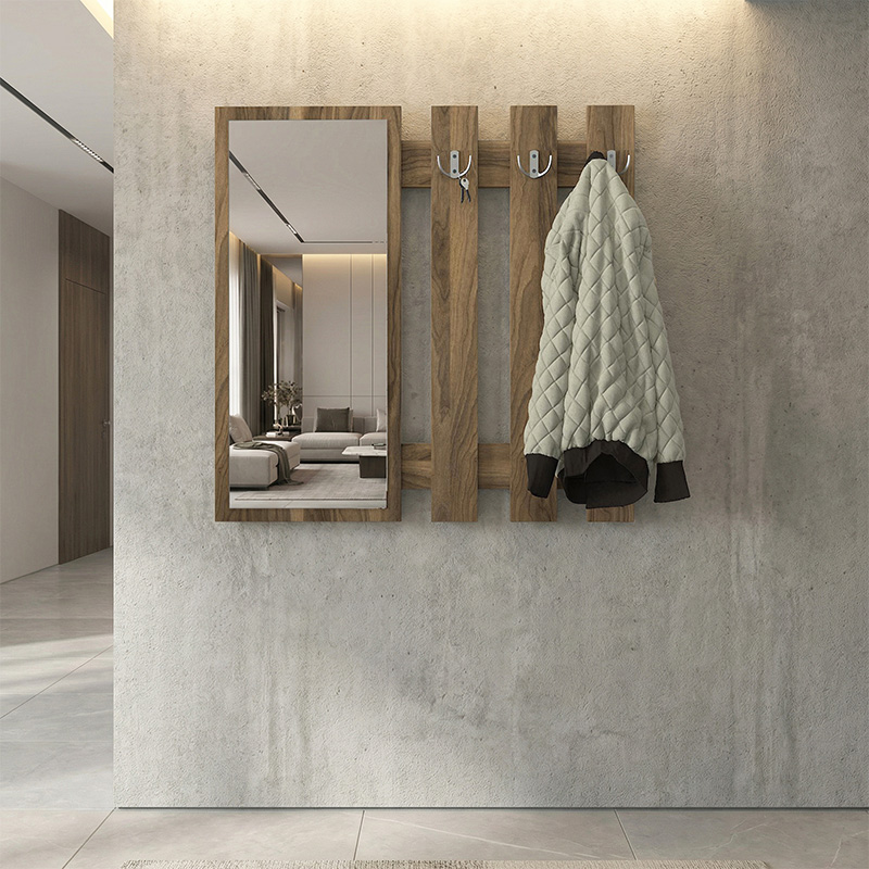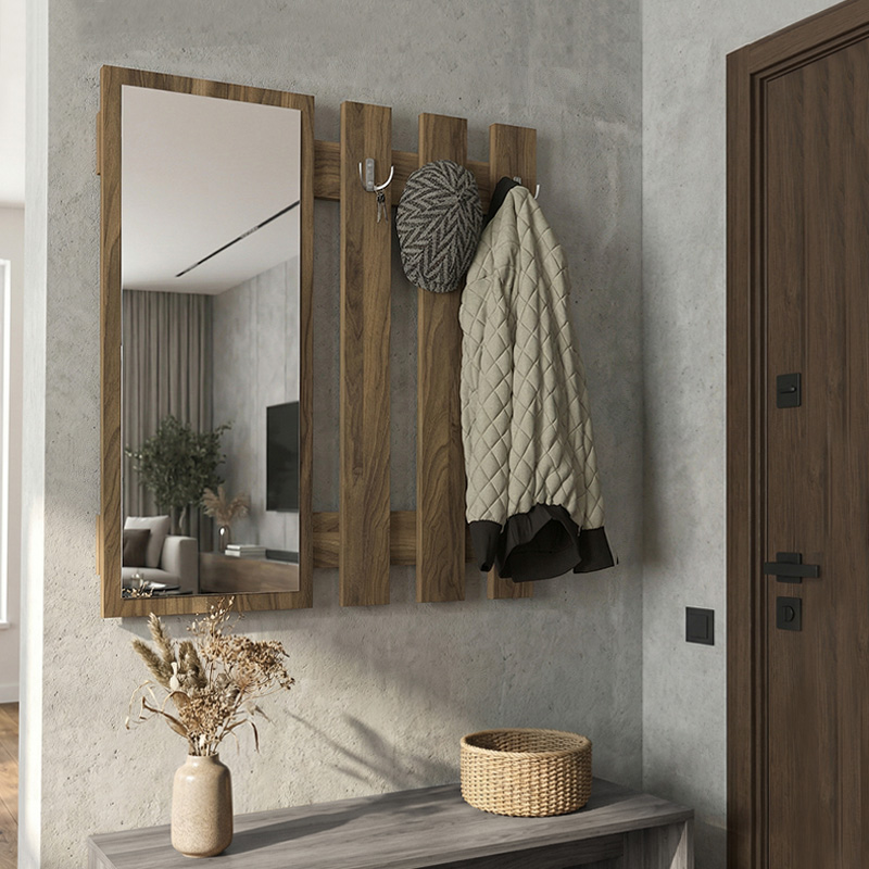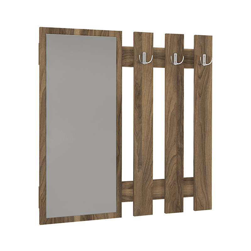 Κρεμάστρα τοίχου με καθρέπτη Folin Megapap χρώμα καρυδί 90x4x90εκ.