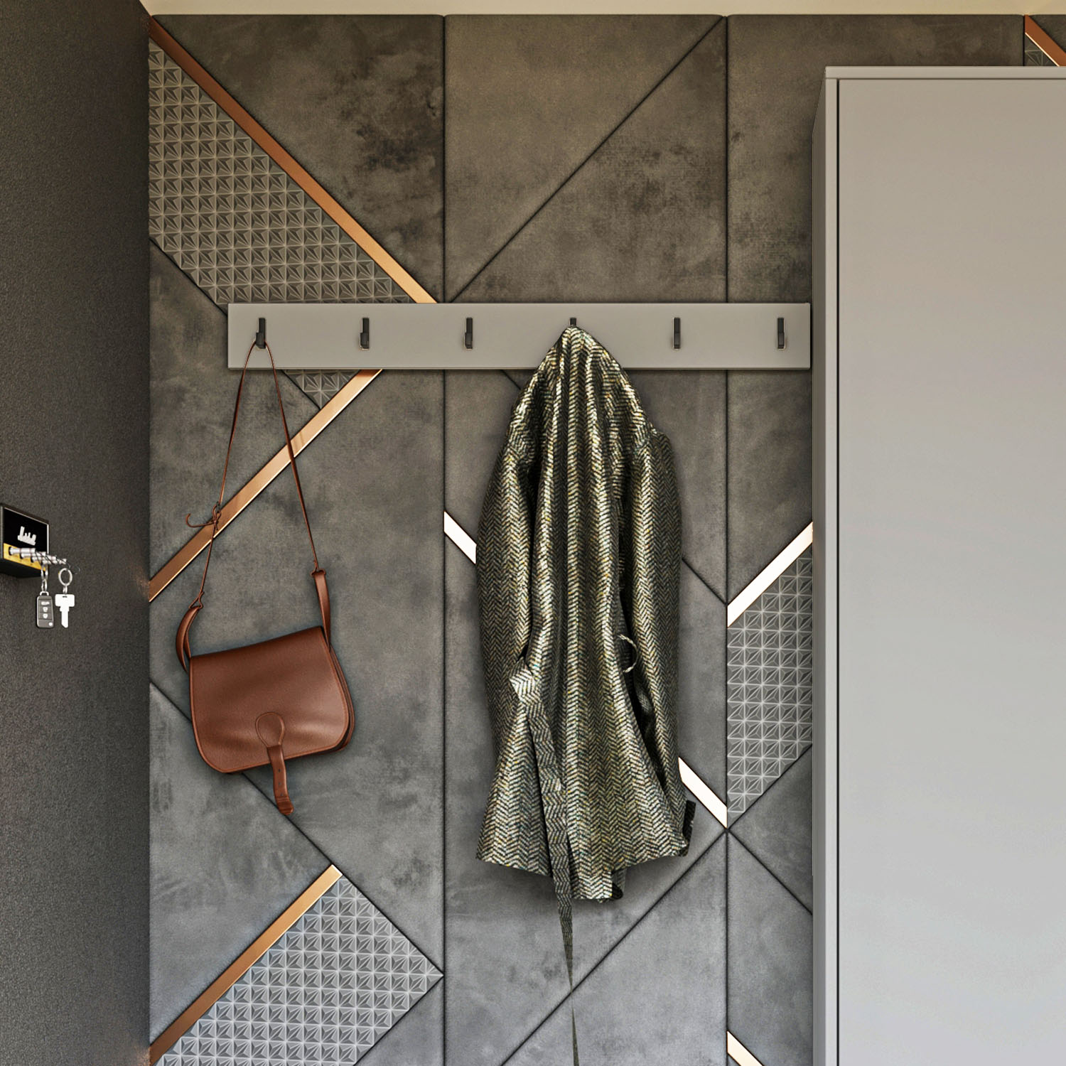 Κρεμάστρα Τοίχου Sara, 90x10cm, ιδανική για την είσοδο του σπιτιού σας ή την κρεβατοκάμαρα σας, σε γκρι απόχρωση.