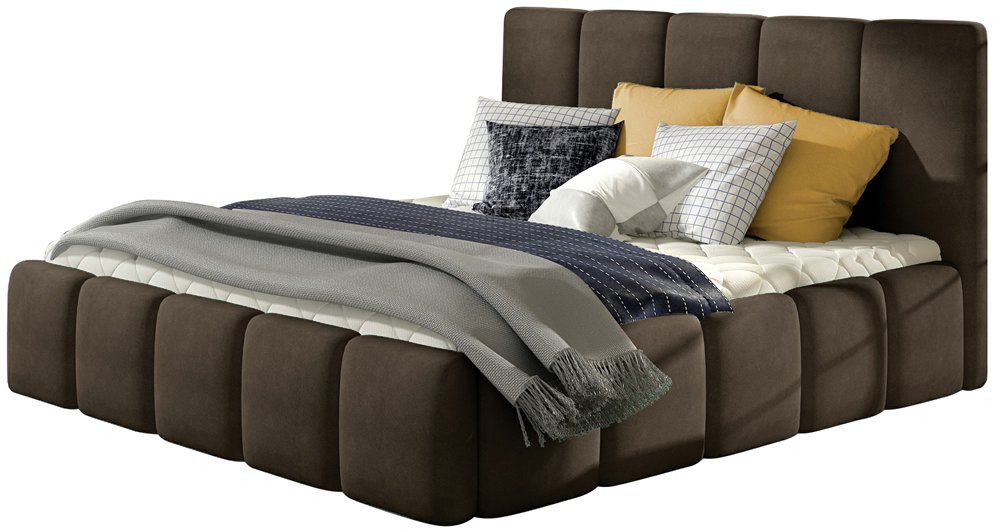 Επενδεδυμένο Κρεβάτι Edvi μοντέρνου σχεδιασμού με σχέδιο στο κεφαλάρι και περιμετρικά του κρεβατιού