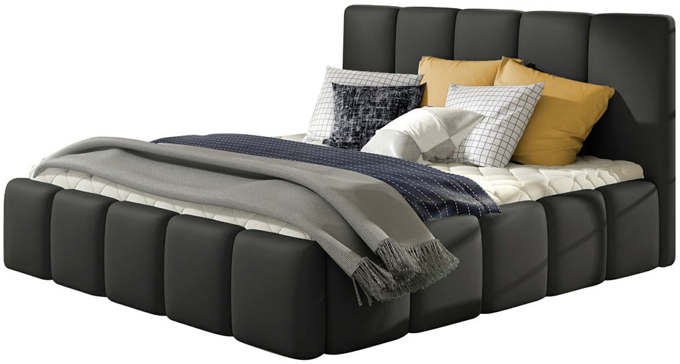 Επενδεδυμένο Κρεβάτι Edvi μοντέρνου σχεδιασμού με σχέδιο στο κεφαλάρι και περιμετρικά του κρεβατιού