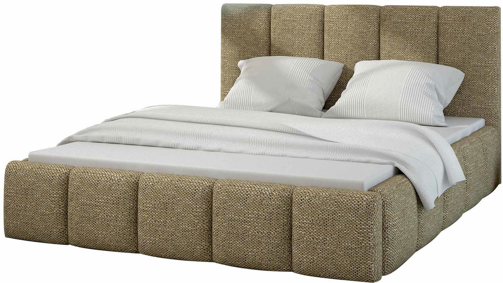 Επενδεδυμένο Κρεβάτι Edvi μοντέρνου σχεδιασμού με σχέδιο στο κεφαλάρι και περιμετρικά του κρεβατιού