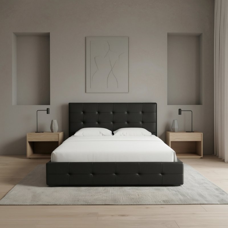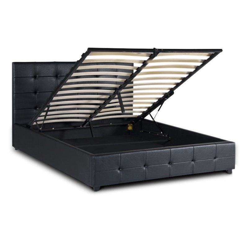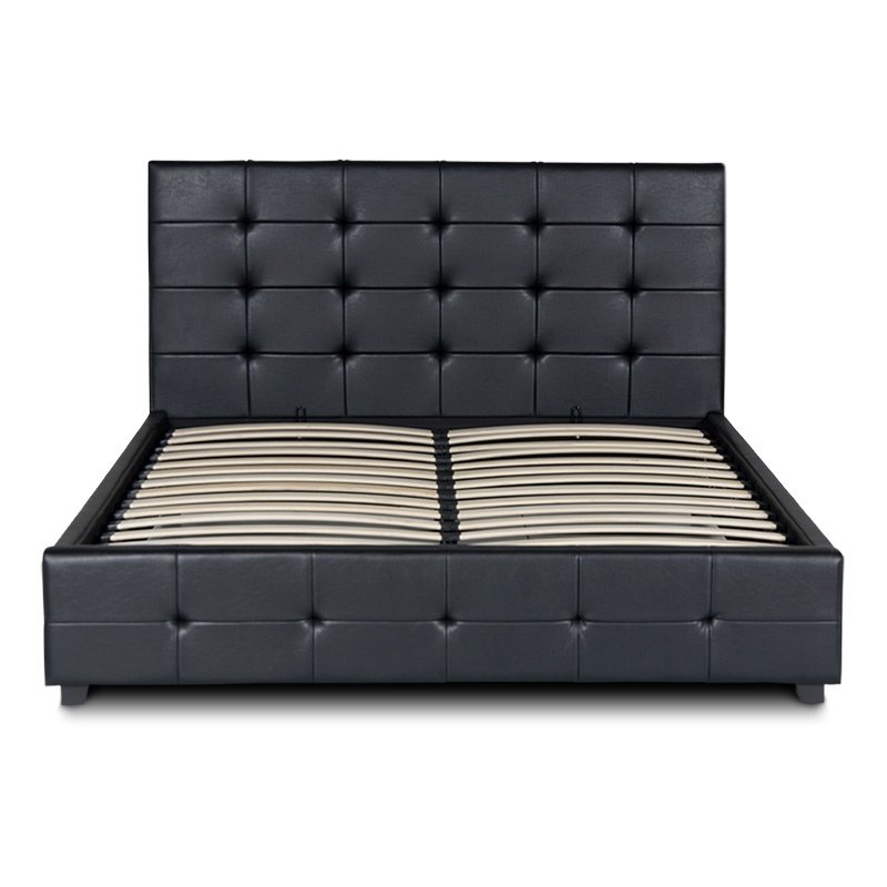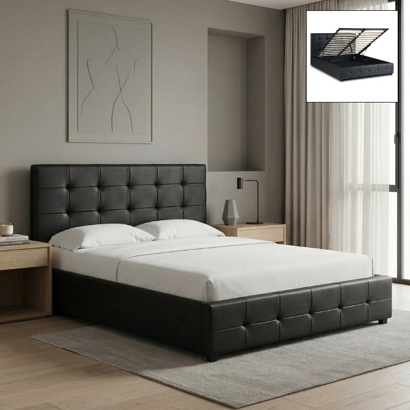 Κρεβάτι Iro Megapap από τεχνόδερμα με αποθηκευτικό χώρο χρώμα μαύρο 150×200εκ.