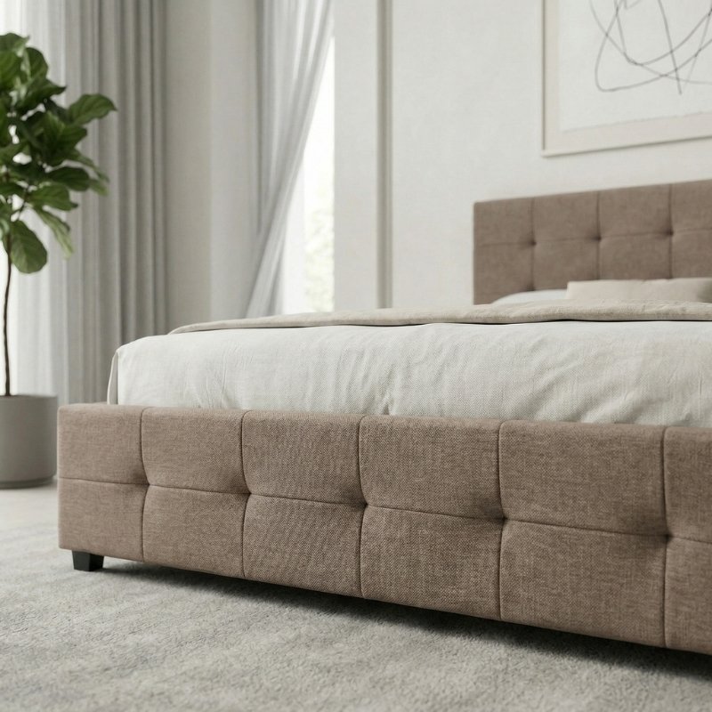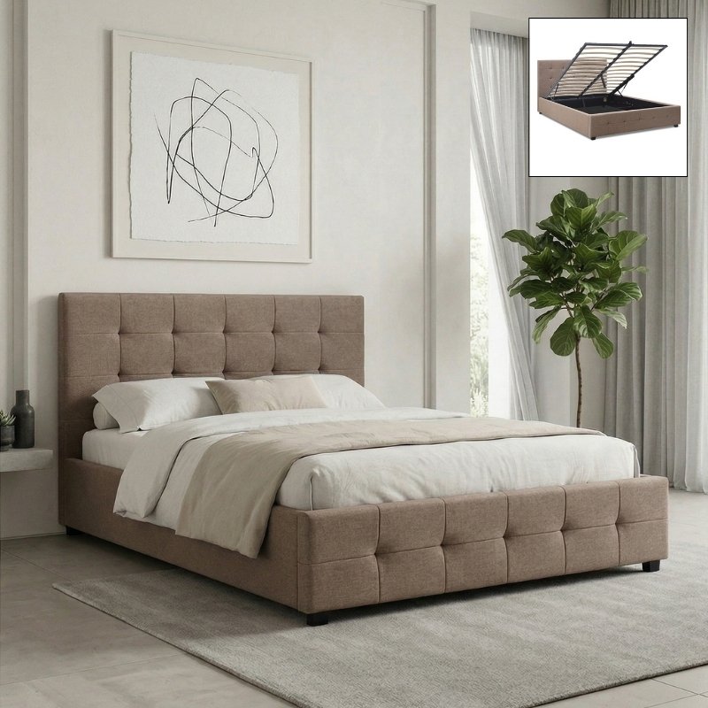 Κρεβάτι Iro Megapap υφασμάτινο με αποθηκευτικό χώρο χρώμα μπεζ – καφέ 160×200εκ.
