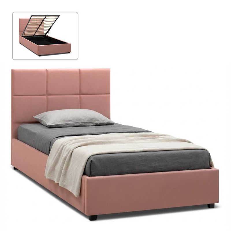 Κρεβάτι Kingston Megapap βελούδινο με αποθηκευτικό χώρο χρώμα melon pink 120×200εκ.