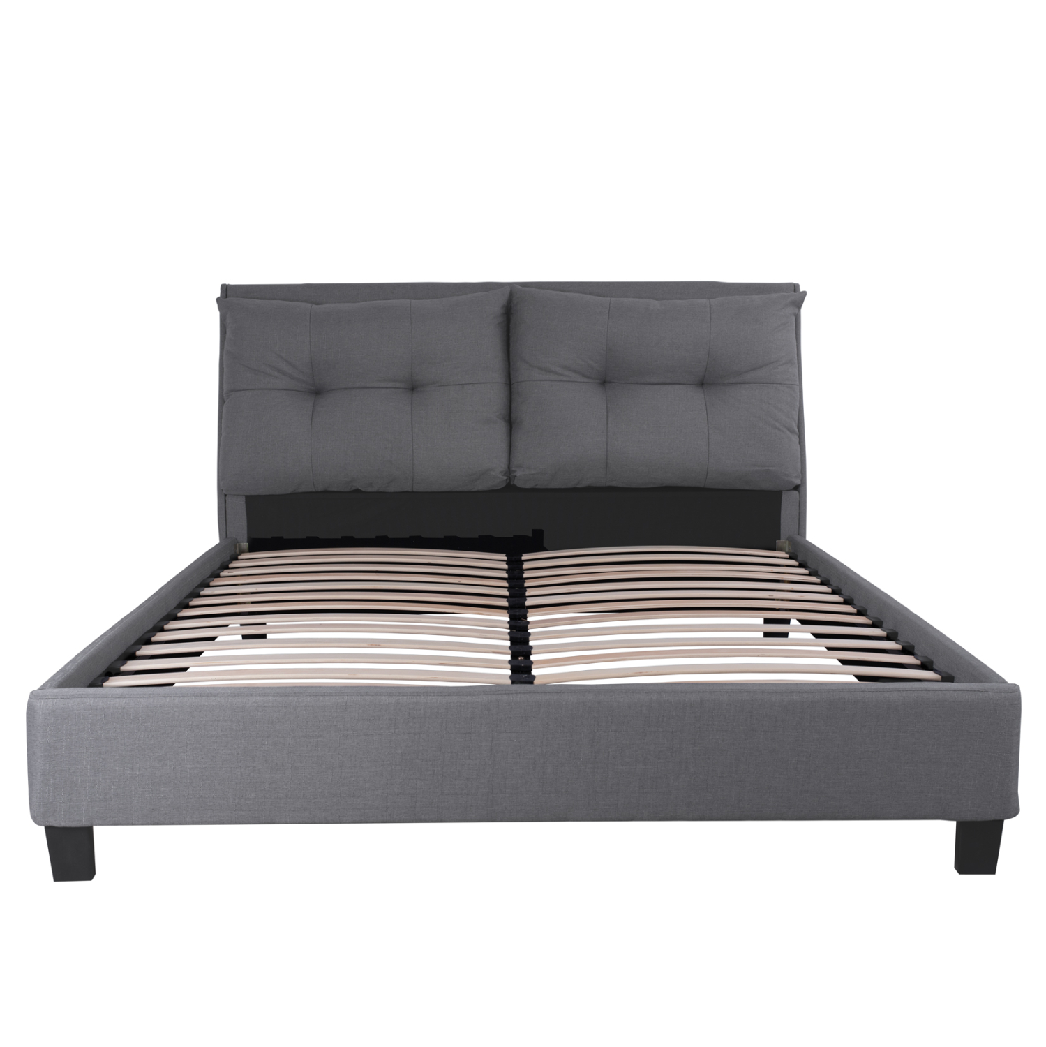 Το υπέρδιπλο κρεβάτι BILLIE είναι επενδυμένο με ποιοτικό ύφασμα σε ΓΚΡΙ χρώμα με δύο καπιτονέ μαξιλάρια στο κεφαλάρι. Το στρώμα που συνοδεύει το κρεβάτι τοποθετείται σε δύο σειρές ανατομικές τάβλες, είναι μονής όψης και είναι τεχνολογίας continuous spring με ενσωματωμένο ανώστρωμα pillow-top. Τα πόδια είναι σχετικά ψηλά από πολυπροπυλένιο σε μαύρο χρώμα.