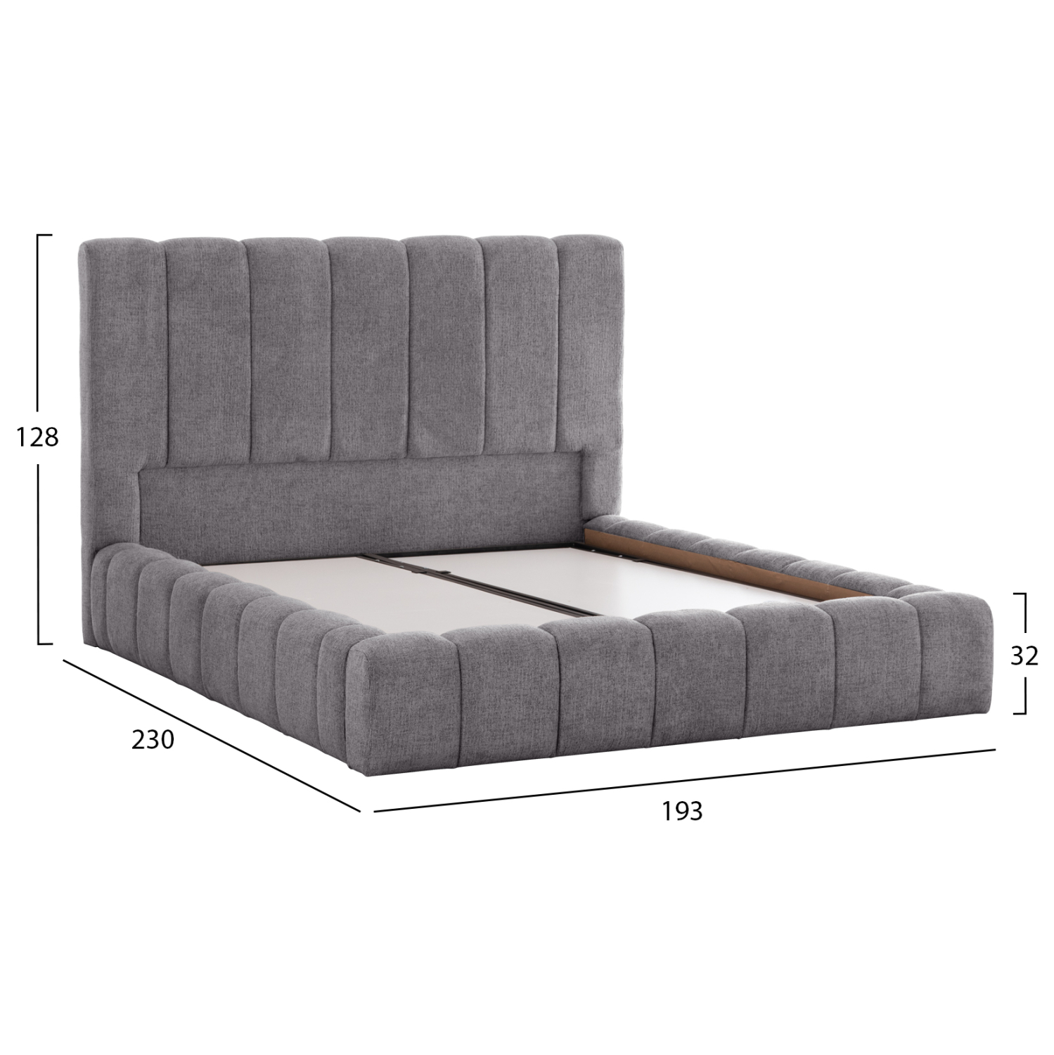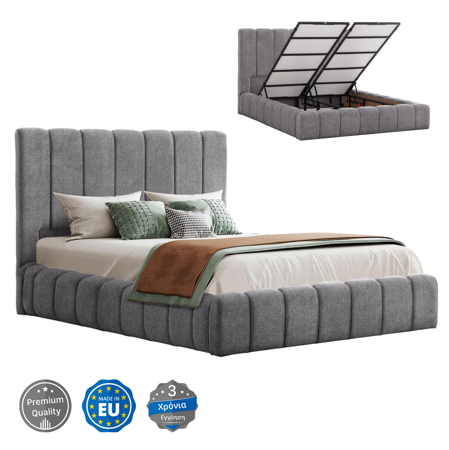 Το REMO είναι ένα κρεβάτι που θα αγαπήσετε με την πρώτη ματιά! Το κεφαλάρι είναι ψηλό με τεχνοτροπία καπιτονέ με κάθετες ραφές από «ζεστό» και εντυπωσιακό ύφασμα TEDDY σε ΓΚΡΙ χρώμα. Τα πλαϊνά του κρεβατιού αλλά και το ποδαρικό είναι ίδιας αισθητικής με το κεφαλάρι και «αγκαλιάζουν» το στρώμα! Όμως, το κύριο χαρακτηριστικό αυτού του κρεβατιού είναι ότι δεν ακολουθεί την κλασική κατασκευή με τις τάβλες του σομιέ για την στήριξη του στρώματος, αλλά αντίθετα αποτελείται από μια συνεχόμενη επιφάνεια (2 μοριοσανίδες), πάνω στις οποίες τοποθετείται το στρώμα! Επιπλέον, η κάθε επιφάνεια από μοριοσανίδα ανασηκώνεται με μεταλλικό μηχανισμό ασφαλείας με 4 αμορτισέρ και διαφανείς πλαστικές λαβές προσφέροντας έναν μεγάλο αποθηκευτικό χώρο. Σε διπλή διάσταση στρώματος 160×200 εκ. θα χωρέσει κάθε σας όνειρο!