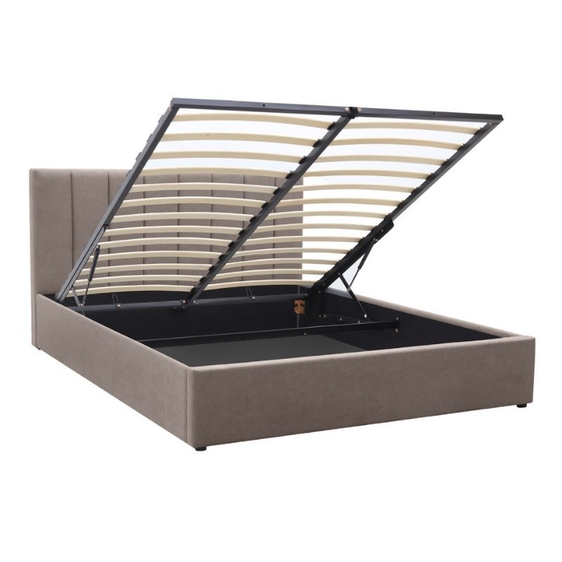 Κρεβάτι Renata Megapap υφασμάτινο με αποθηκευτικό χώρο χρώμα μπεζ 160×200εκ.