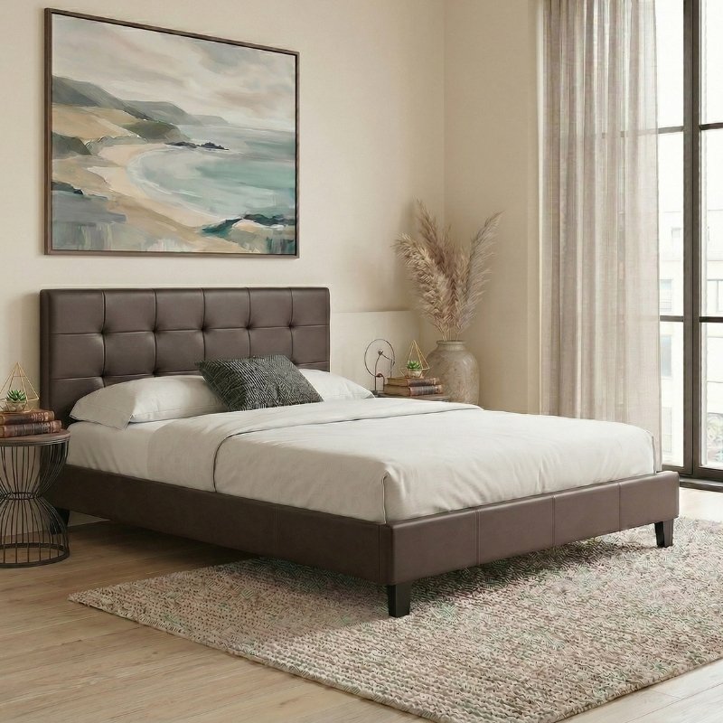 Κρεβάτι Sissy Megapap από τεχνόδερμα χρώμα καφέ 160×200εκ.