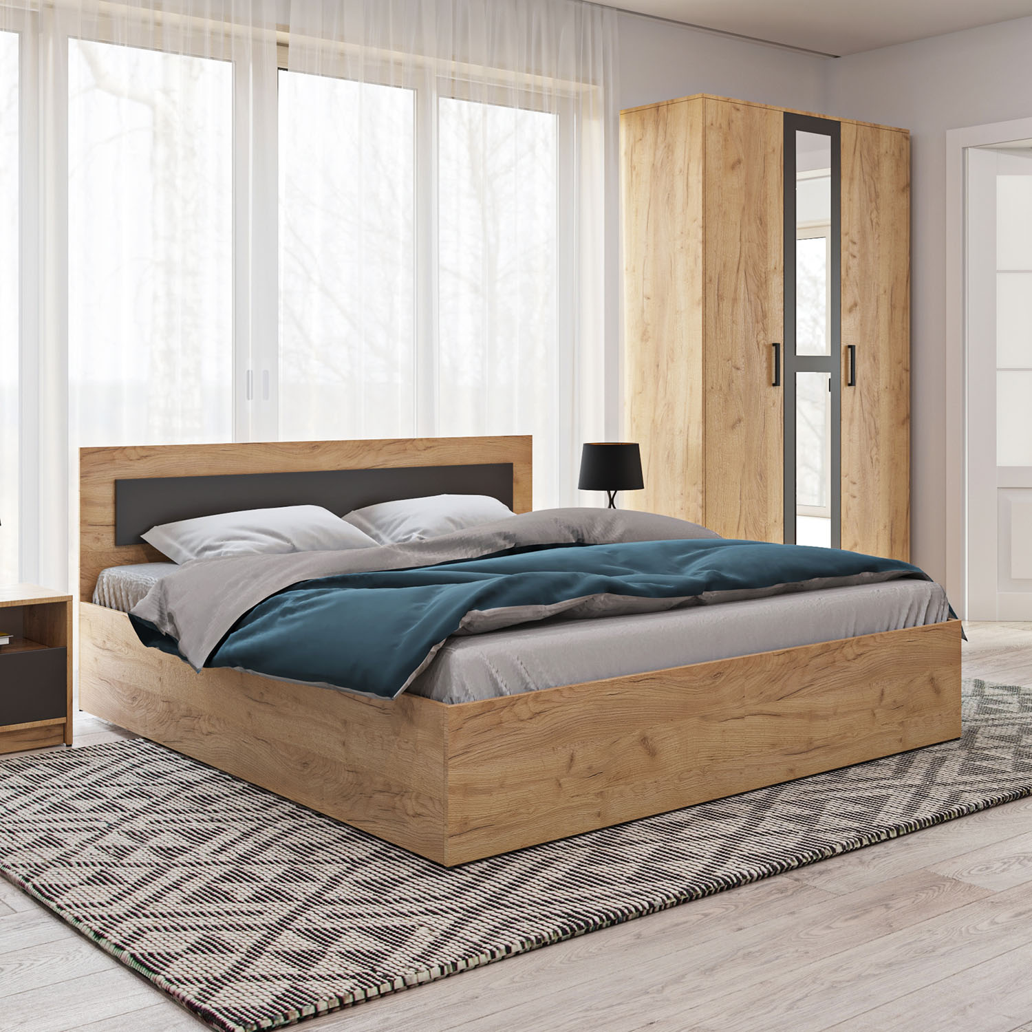 Διπλό Κρεβάτι Viva με τάβλες, Ευρωπαϊκής Κατασκευής, εξαιρετικής ποιότητας και υψηλής αντοχής, σε ιδιαίτερο συνδυασμό χρωμάτων Χρυσό Δρυς-Γραφίτη.