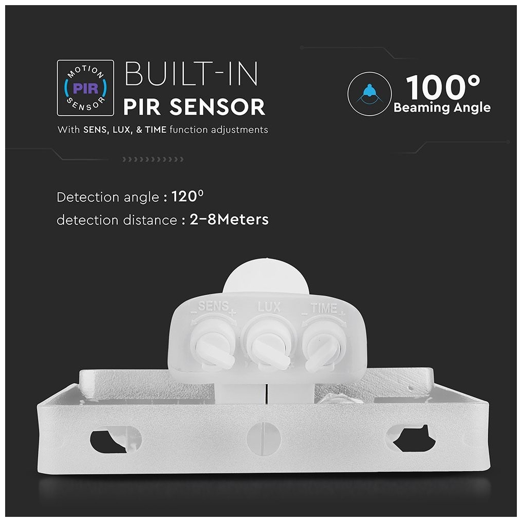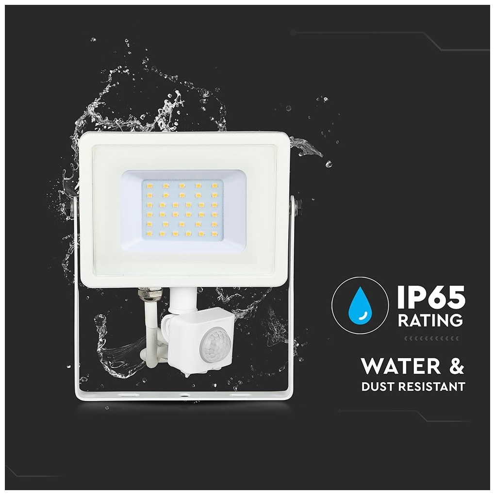 Παρακάτω υπάρχουν περισσότερες πληροφορίες για το προϊόν V-TAC με SKU 458 , κατηγορία Προβολείς – Με αισθητήρα : PRO VT-30-S power LED προβολέας με ισχύ 30W και εξαιρετικά λεπτό σώμα από χυτό αλουμίνιο σε λευκό χρώμα δέσμη φωτός 100°, φωτεινό ροή 2400 lm και αναλογία 80 lm/W Η νέα λεπτή σχεδίαση καθιστά το προϊόν ελαφρύτερο και ευκολότερο στην εγκατάσταση, καθώς και πιο ελκυστική αισθητική από τους κανονικούς προβολείς. Κατάλληλο για χρήση σε εξωτερικούς χώρους χάρη στην προστασία IP65