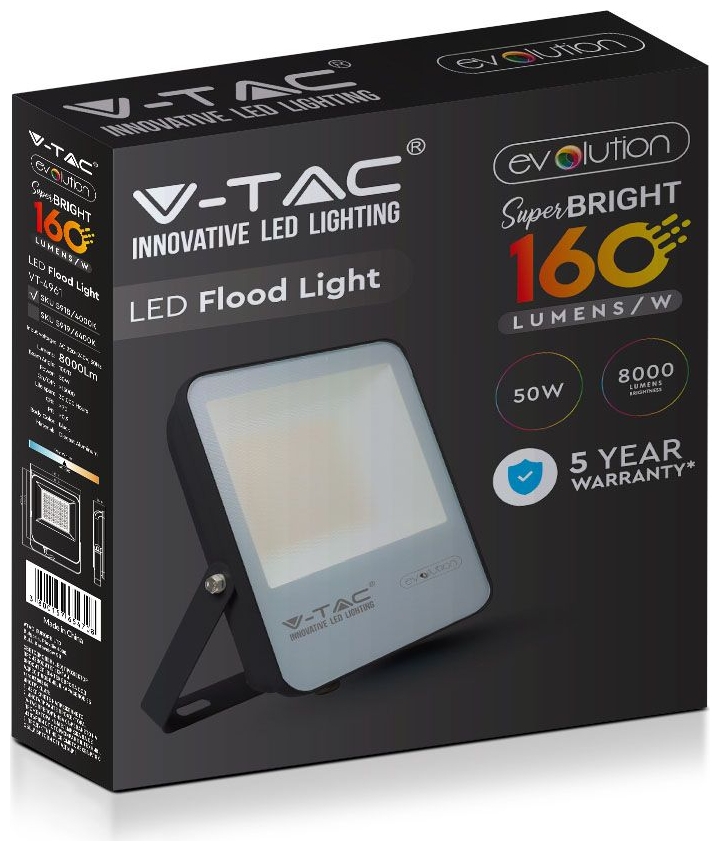 LED Προβολέας V-TAC 50W Μαύρος Evolution 160LM/W Φως Ημέρας 5 Χρόνια Εγγύηση