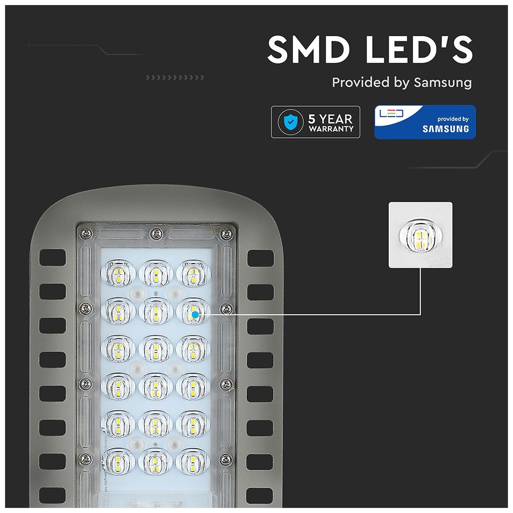 LED V-TAC Φωτιστικό Δρόμου SMD 30W SAMSUNG CHIP A++ 4000K Ιδανικό για το φωτισμό δρόμων, γηπέδων, πάρκων και γενικά μεγάλων επιφανειών.