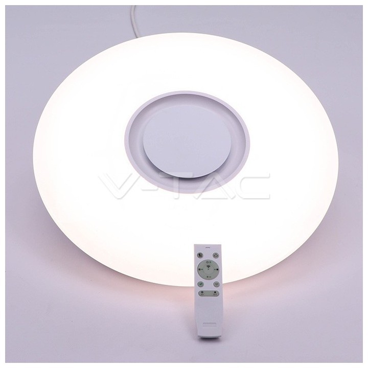 LED V-TAC Πλαφονιέρα 35W RGB+ Λευκό 3 αποχρώσεις, Στρογγυλή με Ενσωματωμένο Ηχείο και Bluetooth χειρισμό από Κοντρόλ ή Κινητό