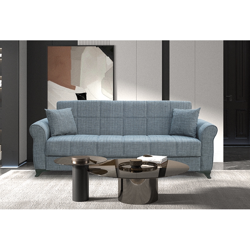 Lena τριθέσιος καναπές/κρεβάτι σε χρώμα grey με διακοσμητικά μαξιλάρια.Ο κομψός και διαχρονικός σχεδιασμός του ταιριάζει σε κάθε σαλόνι, ενώ μπορεί να συνδυαστεί αρμονικά με τον διθέσιο της ίδιας σειράς για ένα ολοκληρωμένο σετ. Διαθέτει εύκολο στη χρήση μηχανισμό, ώστε να μετατρέπεται σε κρεβάτι ανά πάσα στιγμή. Ο αποθηκευτικός χώρος που υπάρχει εσωτερικά του καναπέ εξυπηρετεί στην τοποθέτηση αντικειμένων που χρειαζόμαστε καθημερινά, αλλά δεν θέλουμε να έχουμε συνεχώς σε εμφανές σημείο στο χώρο μας.