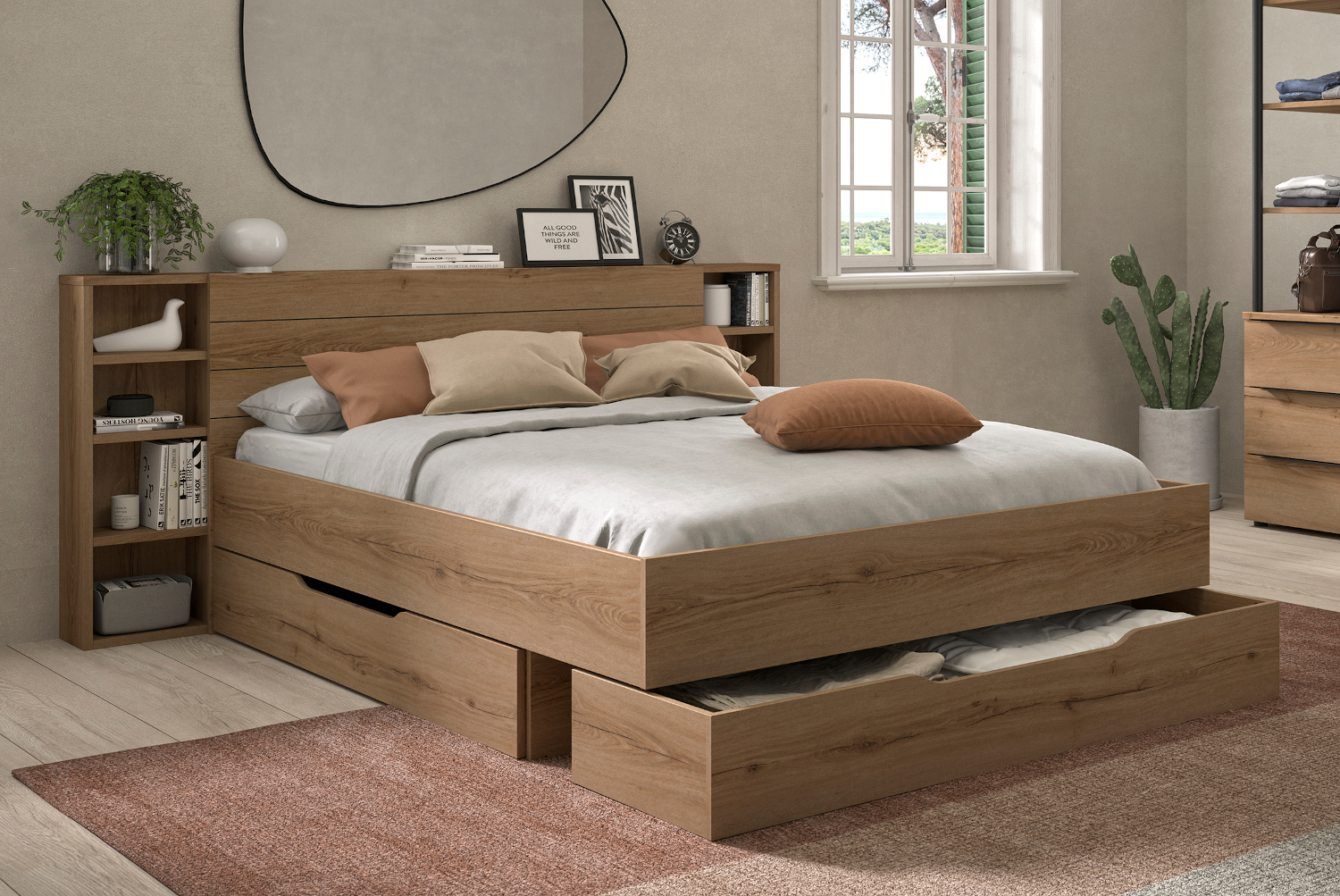 Το κρεβάτι Lucian προσφέρει επιπλέον αποθηκευτικό χώρο με δύο συρτάρια, ιδανικά για την οργάνωση και αποθήκευση των αντικειμένων σας. Επιπλέον, διαθέτει δύο ανοιχτούς χώρους αποθήκευσης για την τοποθέτηση αντικειμένων στα οποία θέλετε να έχετε γρήγορη πρόσβαση.