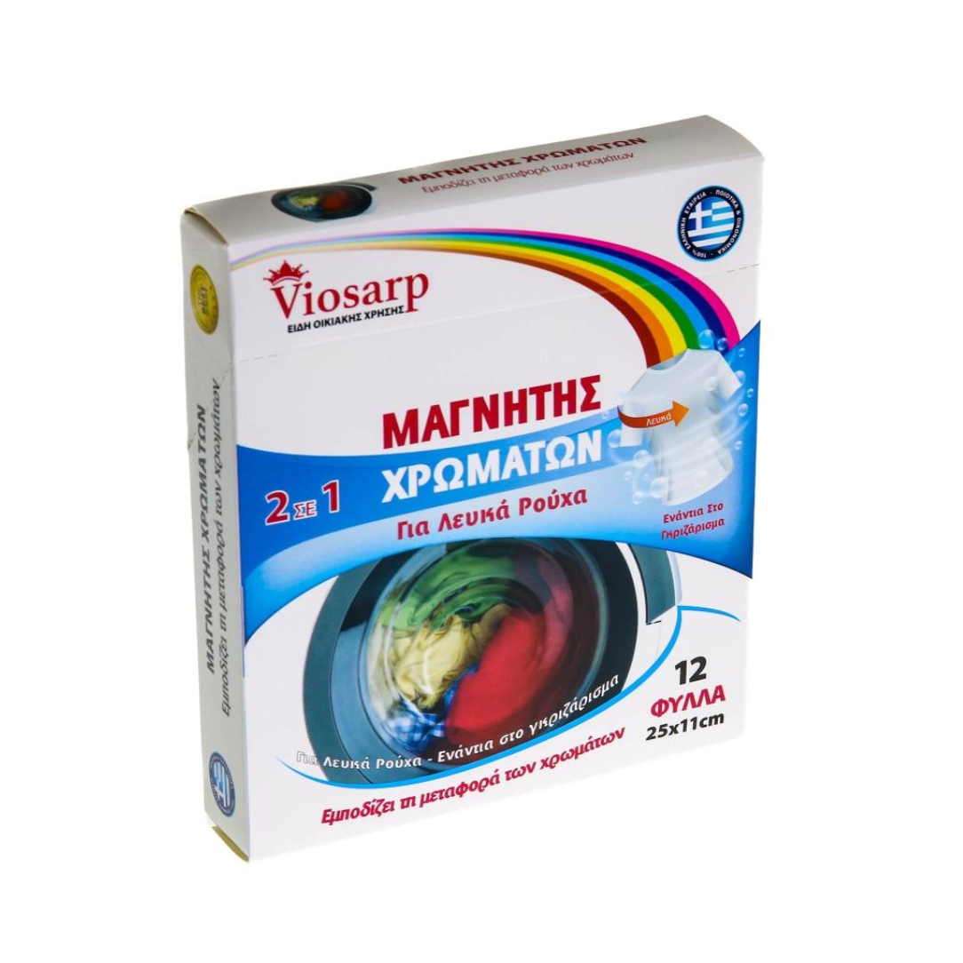 Χρωμοπαγίδες για λευκά ρούχα. Εμποδίζει τη μεταφορά των χρωμάτων. Ενάντια στο γκριζάρισμα. Διαθέτει 12 φύλλα 25x11cm.