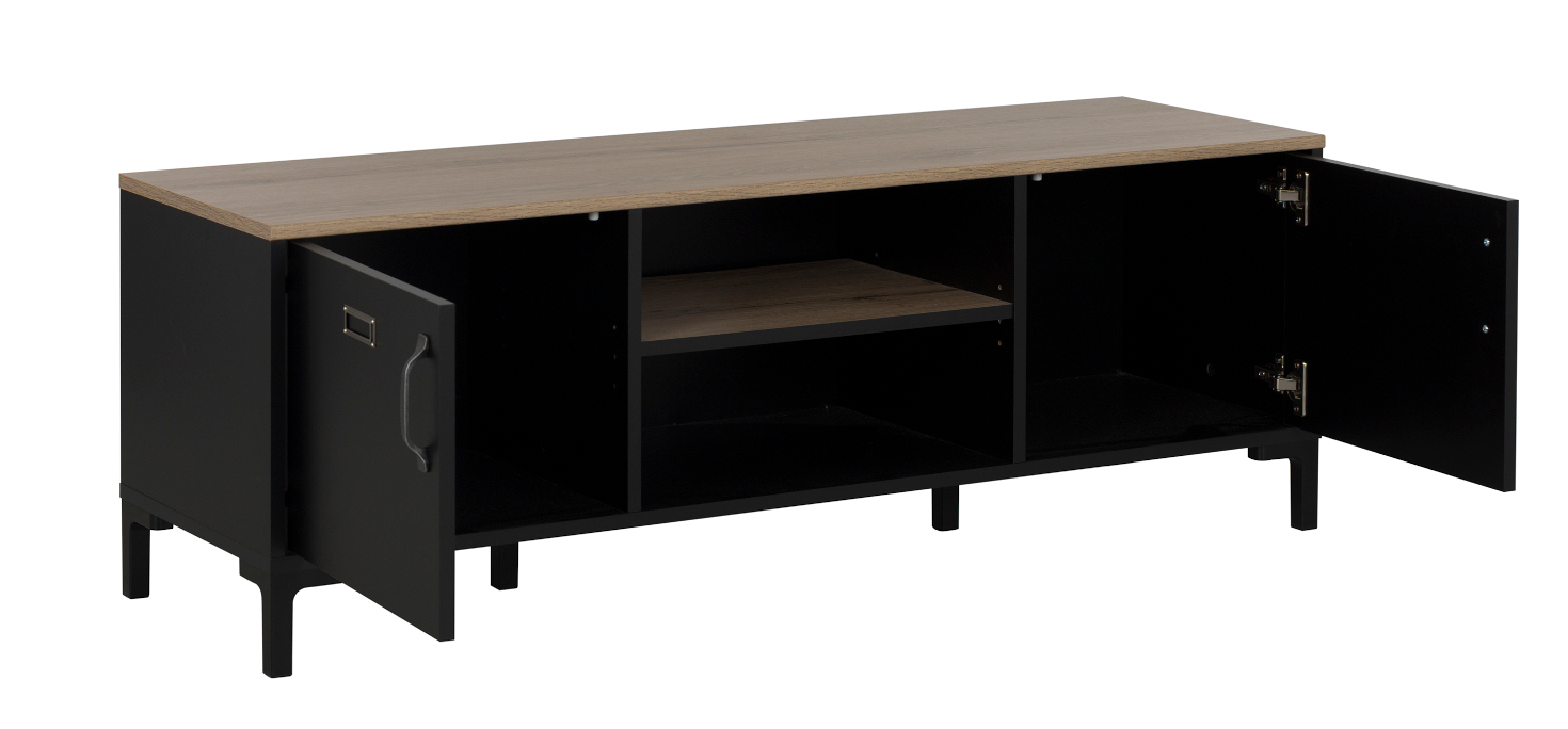 Το έπιπλο τηλεόρασης Manchester είναι μοντέρνο και πρακτικό. Οι διαστάσεις του είναι 136×40εκ. Ύψος : 47εκ. και το χρώμα του ένας υπέροχος συνδυασμός μαύρου με helvezia δρυς. Διαθέτει δύο ντουλάπια και ένα ράφι στη μέση. Συνδυάστε το με τα υπόλοιπα έπιπλα της σειράς Manchester. Το έπιπλο τηλεόρασης Manchester είναι γαλλικής κατασκευής.