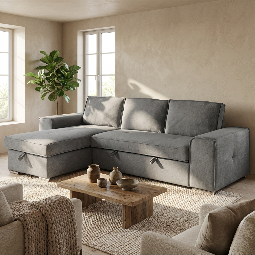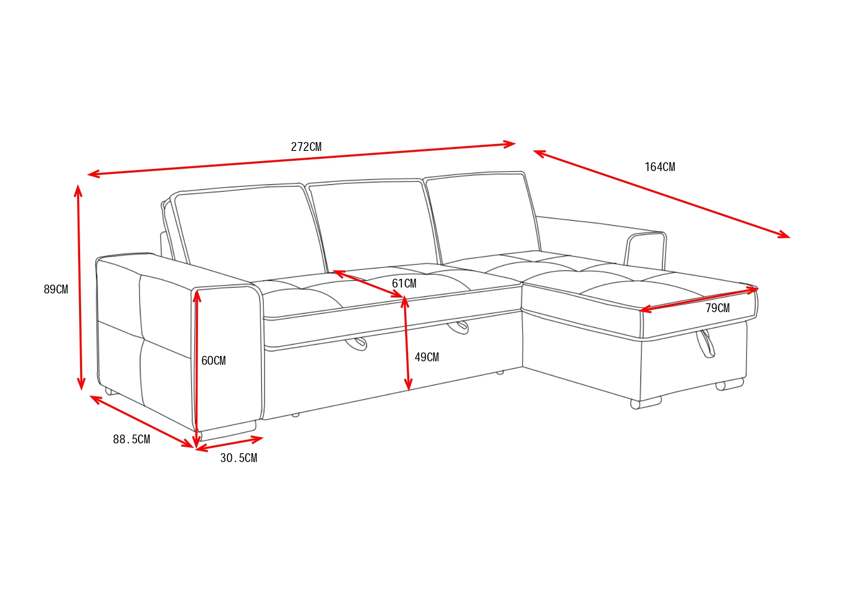 Ο γωνιακός καναπές Merano είναι μοντέρνος και αναπαυτικός. Το ύφασμα του καναπέ είναι σε χρώμα γκρι ανοιχτό. Οι διαστάσεις του είναι 272×164εκ. Ο καναπές γωνία Merano διαθέτει αποθηκευτικό χώρο στο ανάκλινδρο και μετατρέπεται εύκολα σε κρεβάτι διαστάσεων 132×213εκ. Η γωνία του καναπέ είναι αναστρέψιμη.