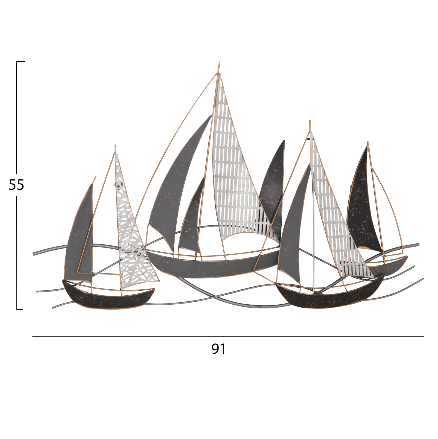 Μεταλλικό διακοσμητικό τοίχου σε ανθρακί και λευκή απόχρωση με χρυσές λεπτομέρειες.