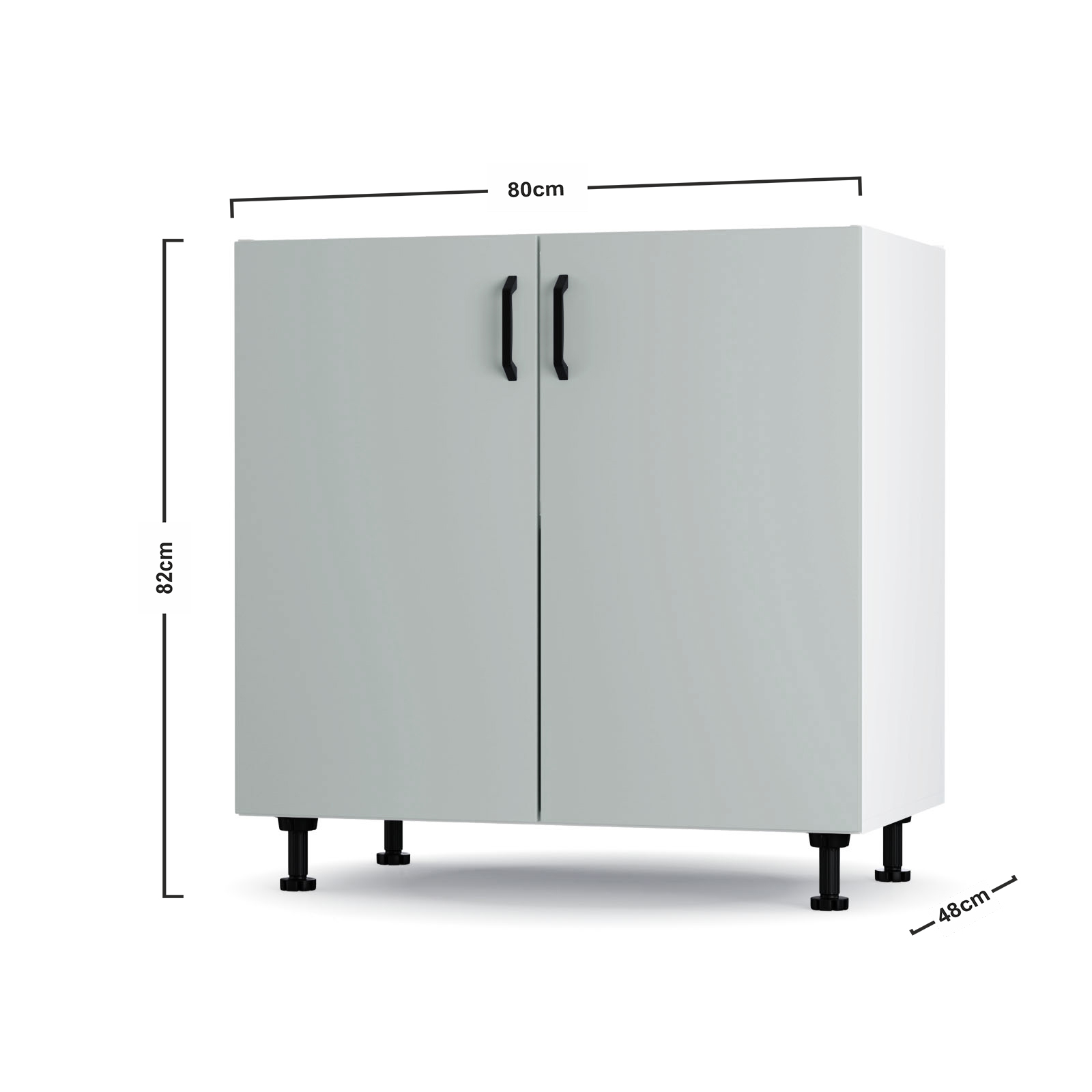 Modest Επιδαπέδιο Ντουλάπι Νεροχύτη, Ευρωπαϊκής κατασκευής, εξαιρετικής ποιότητας και υψηλής αντοχής σε γκρι απόχρωση. Το έπιπλο διαθέτει δύο ανοιγόμενα πορτάκια, με δύο χερούλια, καθώς και ενιαίο χώρο για την αποθήκευση αντικειμένων.. Μπορείτε να το συνδυάσετε με τα υπόλοιπα ντουλάπια κουζίνας της σειράς Modest.