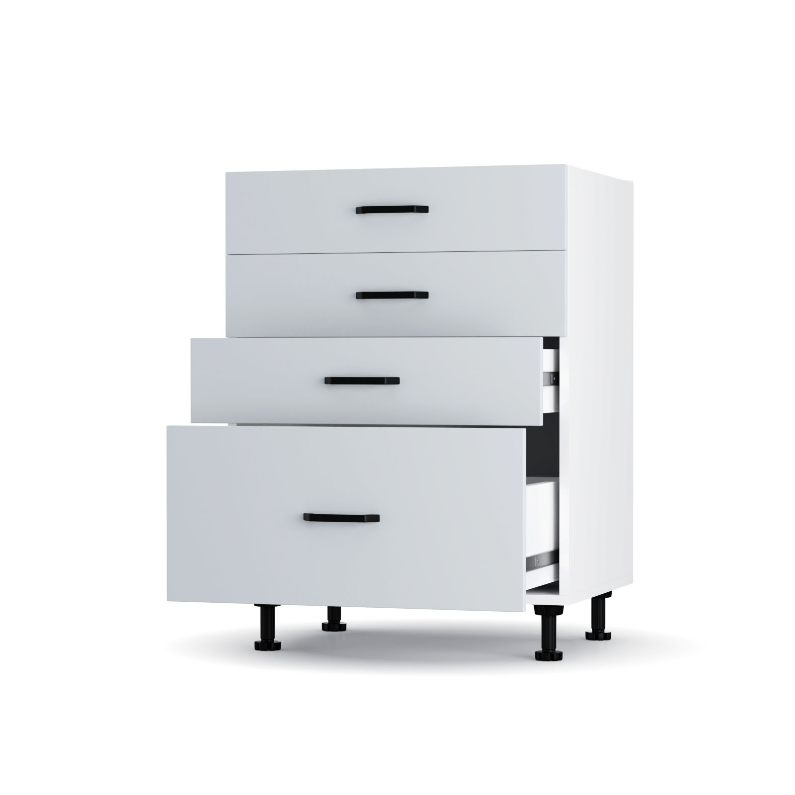 Modest Επιδαπέδιο Ντουλάπι, Ευρωπαϊκής κατασκευής, εξαιρετικής ποιότητας και υψηλής αντοχής σε γκρι απόχρωση. Το έπιπλο διαθέτει τέσσερα συρτάρια για την αποθήκευση αντικειμένων καθώς και τέσσερα μεταλλικά χερούλια. Μπορείτε να το συνδυάσετε με τα υπόλοιπα ντουλάπια κουζίνας της σειράς Modest.