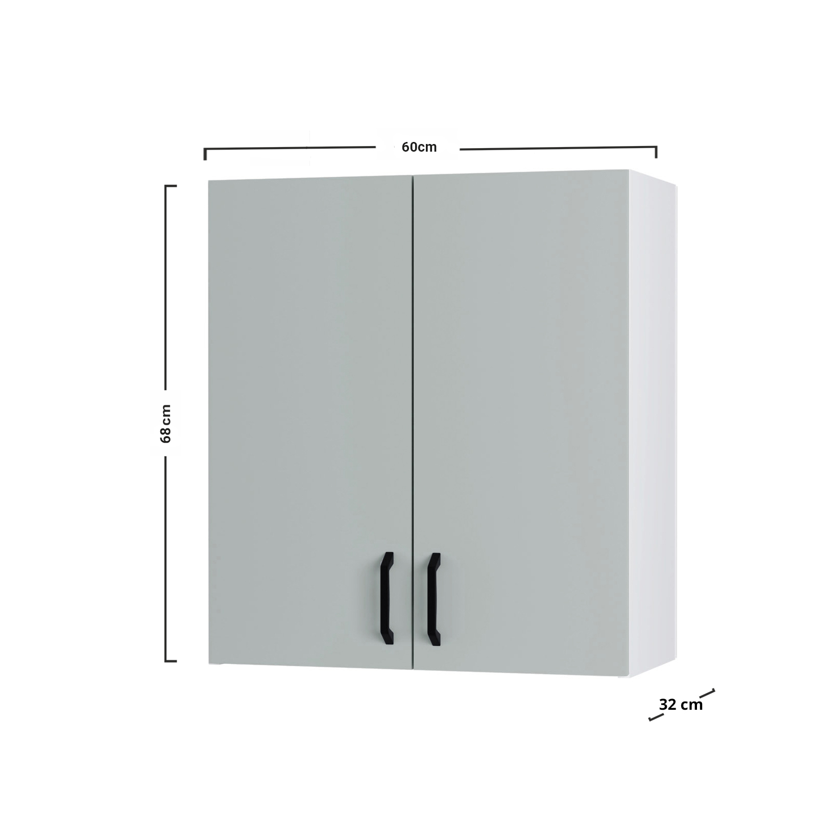 Επιτοίχιο Ντουλάπι Απορροφητήρα Modest, Ευρωπαϊκής κατασκευής, εξαιρετικής ποιότητας και υψηλής αντοχής σε γκρι απόχρωση. Το έπιπλο διαθέτει, δύο ανοιγόμενα πορτάκια, ενιαίο χώρο αποθήκευσης αντικειμένων καθώς και δύο χερούλια. Μπορείτε να το συνδυάσετε με τα υπόλοιπα ντουλάπια κουζίνας της σειράς Modest.