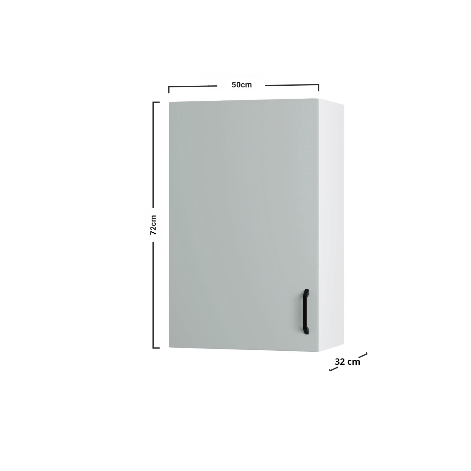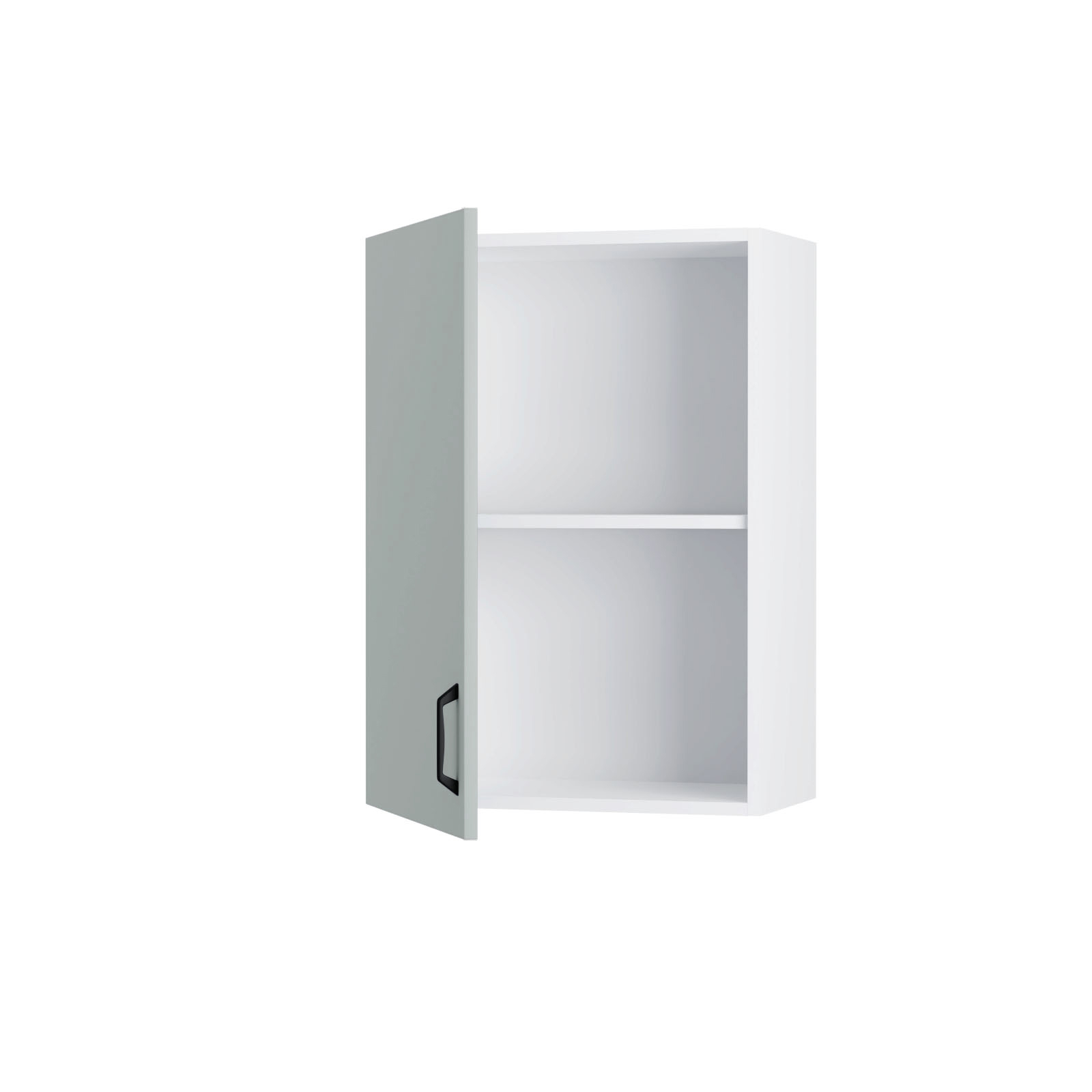 Επιτοίχιο Ντουλάπι Modest, Ευρωπαϊκής κατασκευής, εξαιρετικής ποιότητας και υψηλής αντοχής σε γκρι απόχρωση. Το έπιπλο διαθέτει ένα ανοιγόμενο πορτάκι με ένα χερούλι, καθώς και ένα ράφι για την τοποθέτηση αντικειμένων.