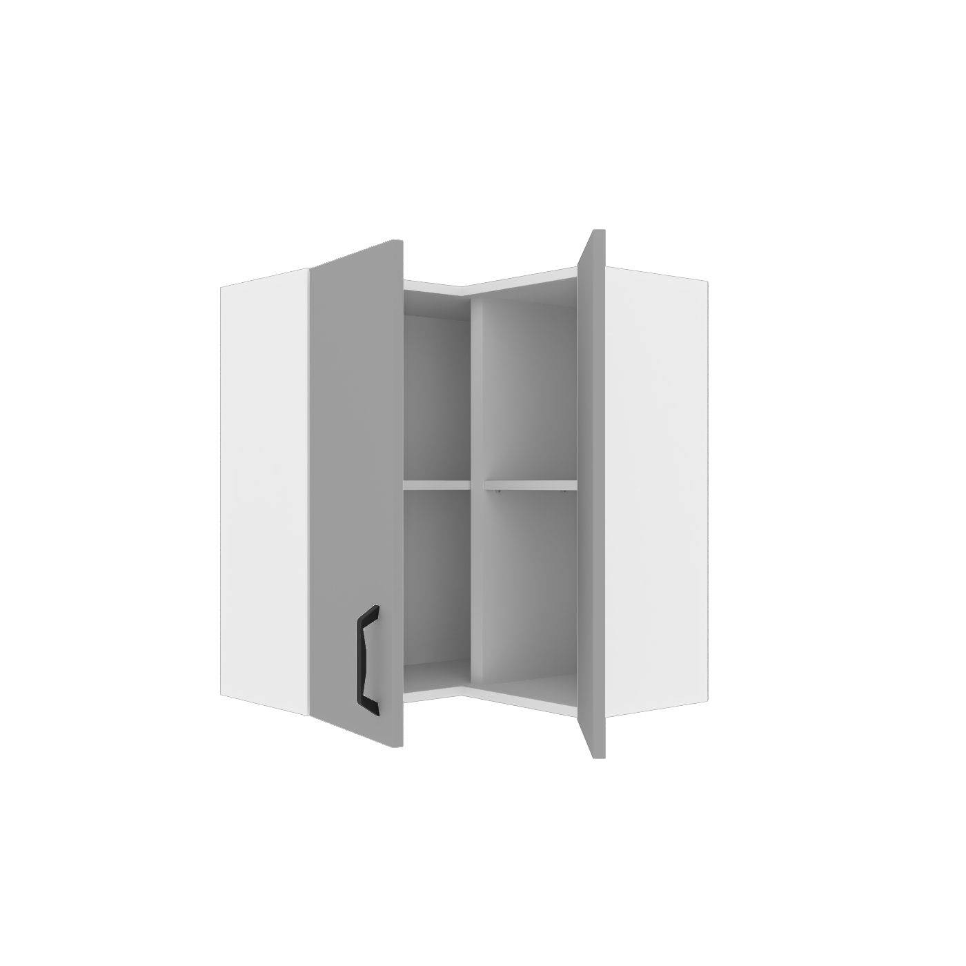 Επιτοίχιο Ντουλάπι Γωνιακό Modest, Ευρωπαϊκής κατασκευής, εξαιρετικής ποιότητας και υψηλής αντοχής σε γκρι απόχρωση. Το έπιπλο διαθέτει, ένα ανοιγόμενα πορτακία, με ένα χερούλι, καθώς και ένα ράφι για την τοποθέτηση αντικειμένων. Μπορείτε να το συνδυάσετε με τα υπόλοιπα ντουλάπια κουζίνας της σειράς Modest.