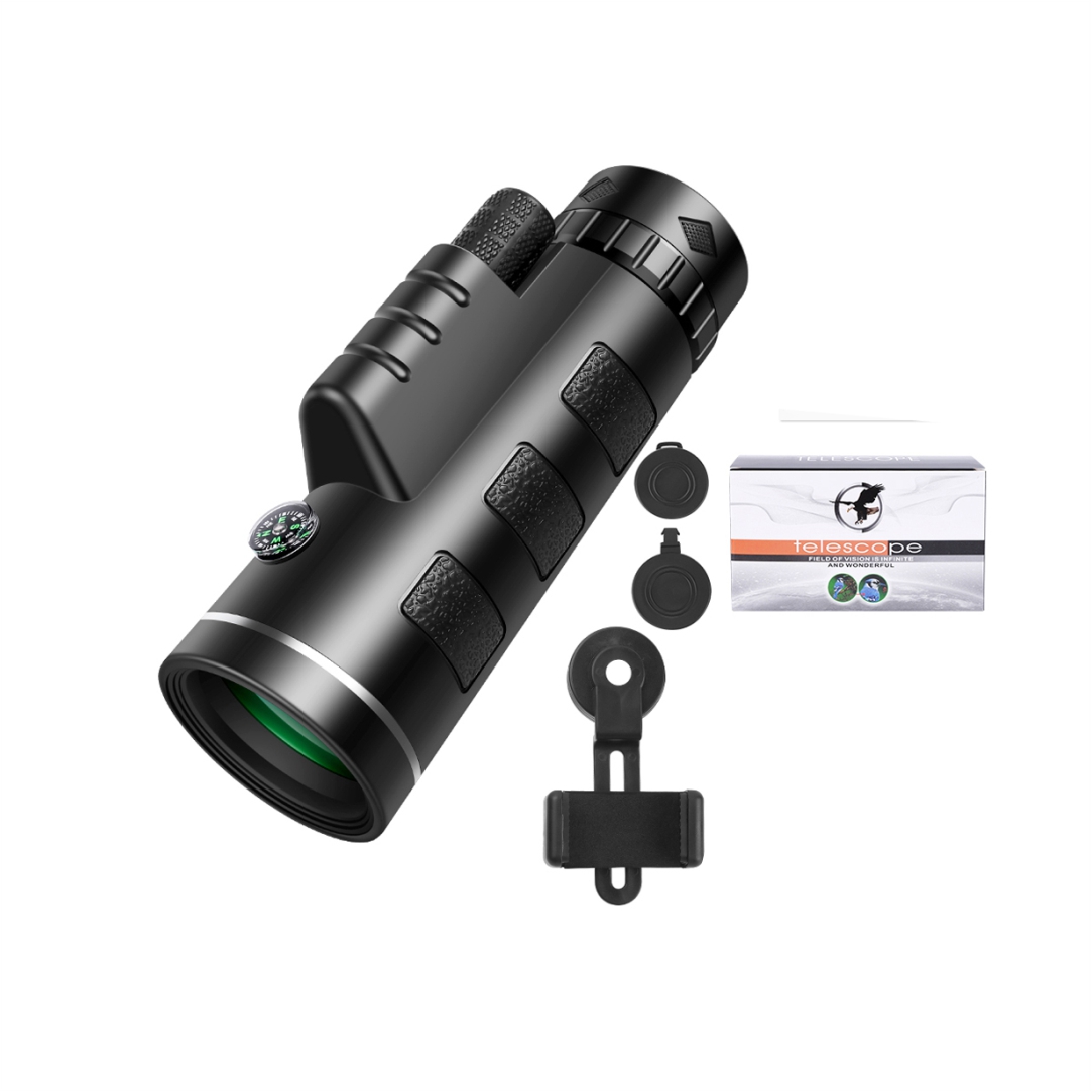 Μονόφθαλμο τηλεσκόπιο τσέπης. Βοηθάει να δείτε τα πράγματα 40X πιο κοντά και πιο καθαρά και φωτεινά με φακό στόχου 60MM και φακό ματιού 16mm. Μπορείτε να το χρησιμοποιήσετε σε βροχερή ημέρα και υγρό περιβάλλον και δεν χρειάζεται να ανησυχείτε για αυτό το στοιχείο. Διαθέτει νυχτερινή όραση. Διαθέτει πυξίδα. Διαστάσεις 16×5.5cm. Διαθέτει τρίποδο και βάση για το κινητό.