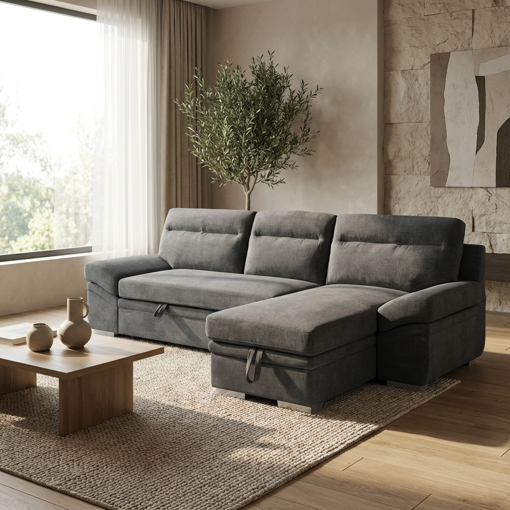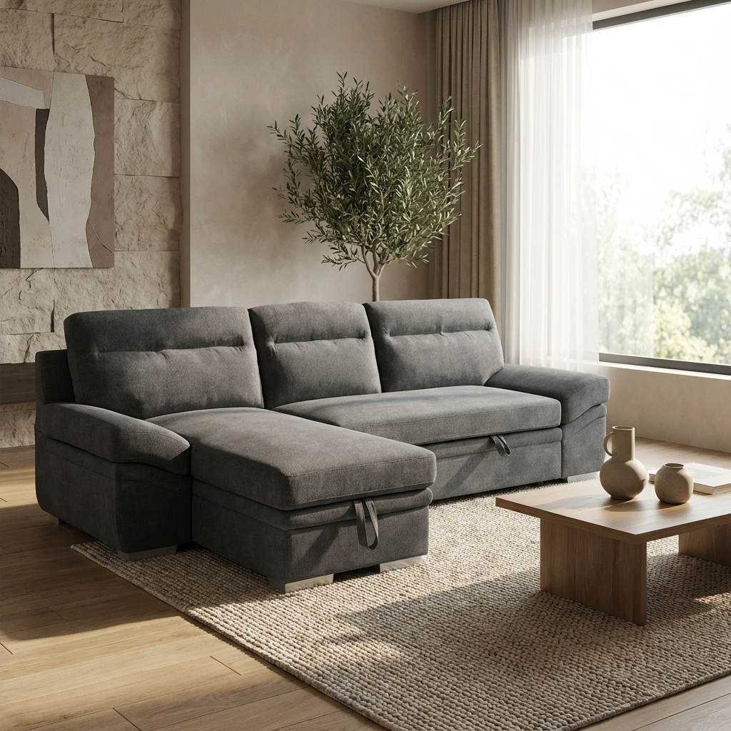 O γωνιακός καναπές Morel είναι η ιδανική επιλογή για όσους αναζητούν ένα έπιπλο που συνδυάζει το μοντέρνο στυλ με την πρακτικότητα και την άνεση. Με διαστάσεις 262×159εκ και ύψος 92εκ, αυτός ο γωνιακός καναπές προσφέρει ευρύχωρη καθιστική επιφάνεια, τέλεια για την χαλάρωση, την παρακολούθηση τηλεόρασης ή την φιλοξενία φίλων. Επενδυμένος με ύφασμα σε γκρι σκούρο χρώμα, ο Morel αποπνέει μια αίσθηση σύγχρονης κομψότητας που ταιριάζει αρμονικά με διάφορα σχέδια εσωτερικού χώρου. Το γκρι σκούρο χρώμα είναι ευέλικτο και διαχρονικό, ιδανικό για κάθε σπίτι. Με ενσωματωμένο αποθηκευτικό χώρο στο ανάκλινδρο, αυτός ο καναπές σας επιτρέπει να μεγιστοποιήσετε τον χώρο σας, διατηρώντας παράλληλα την τάξη και την οργάνωση. Προσφέροντας ακόμη μεγαλύτερη ευελιξία, η γωνία του καναπέ Morel είναι αναστρέψιμη. Αυτό σημαίνει ότι μπορείτε να τοποθετήσετε τη γωνία στην αριστερή ή τη δεξιά πλευρά, ανάλογα με τις ανάγκες σας ή τη διάταξη του χώρου σας.