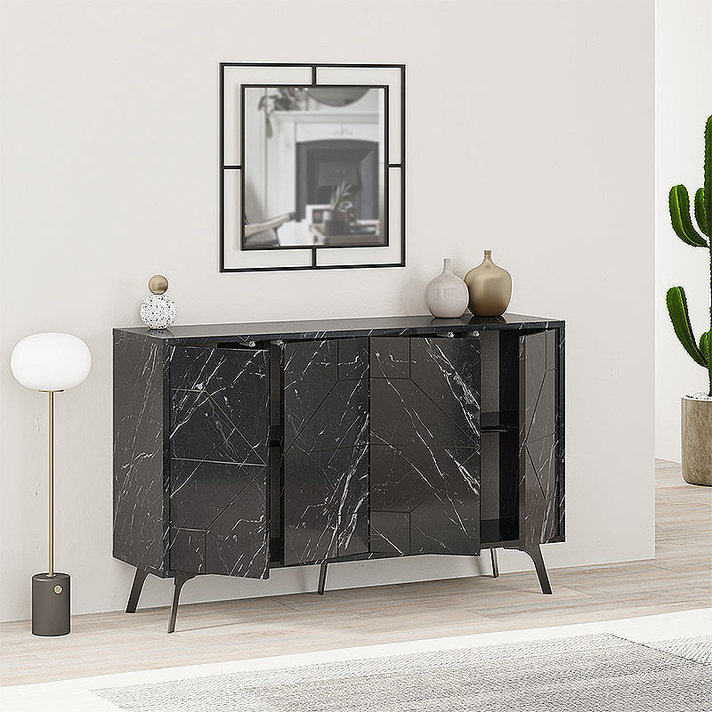 Μπουφές μελαμίνης Dune Megapap χρώμα μαύρο εφέ μαρμάρου 123x35x77,4εκ.