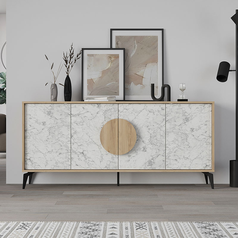 Μπουφές μελαμίνης Gora Megapap χρώμα sapphire oak – λευκό εφέ μαρμάρου 180×35,6×82εκ.
