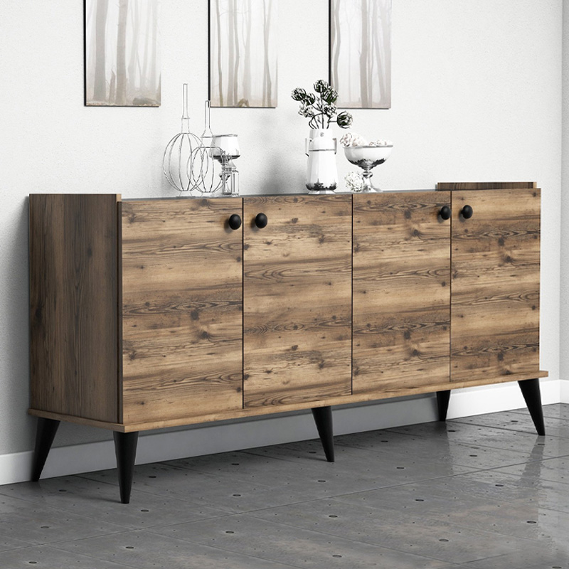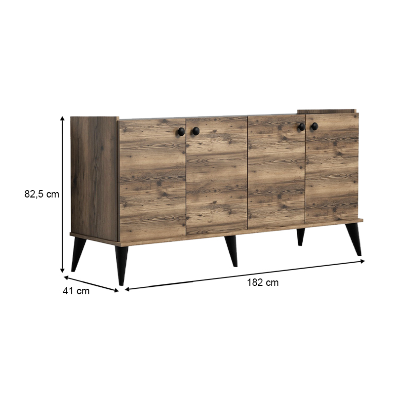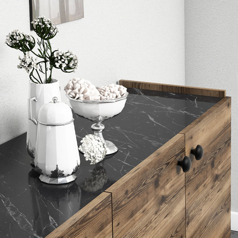 Μπουφές Lidya Megapap χρώμα καρυδί – μαύρο εφέ μαρμάρου 182x41x82,5εκ.