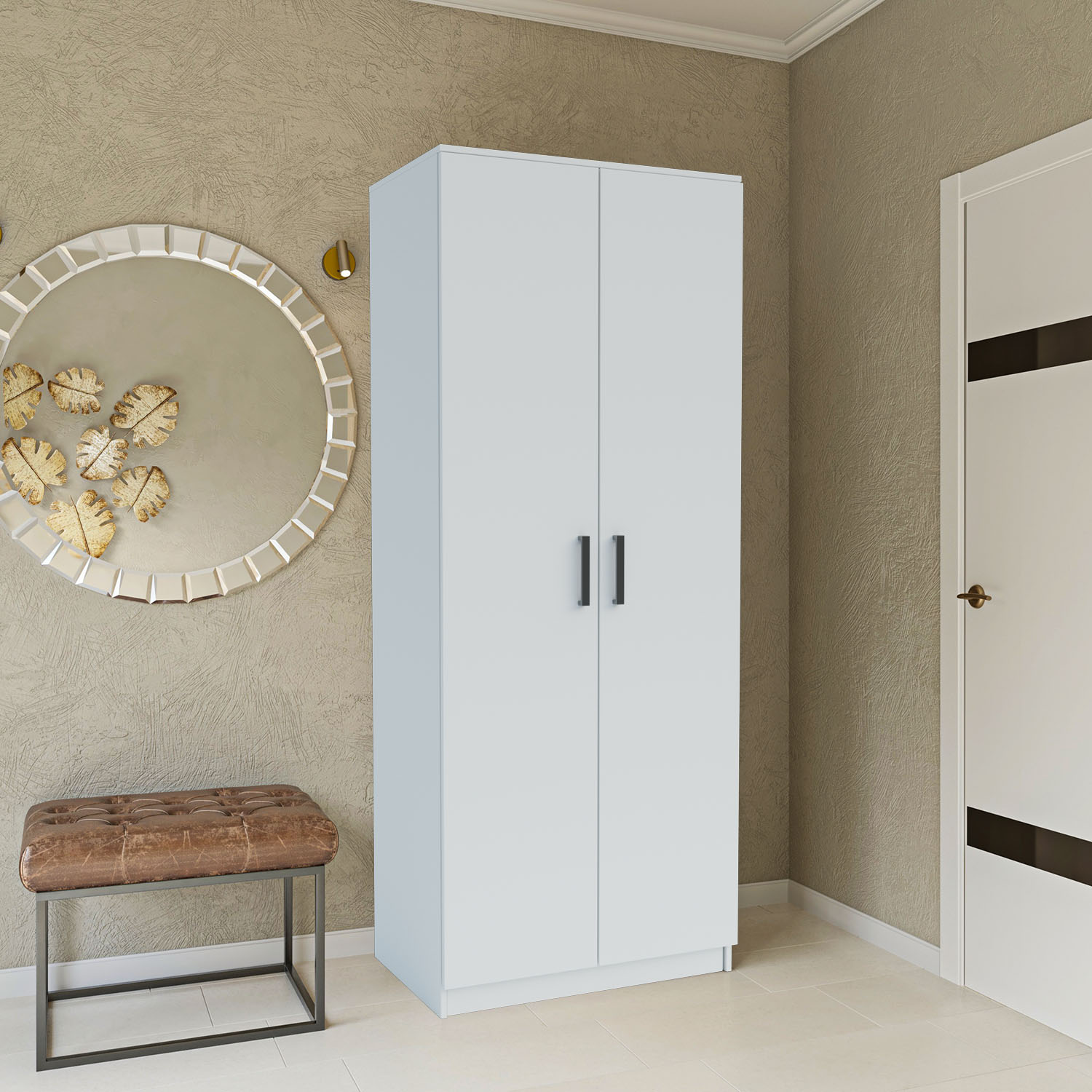 Δίφυλλη Ντουλάπα Simple, Ευρωπαϊκής Κατασκευής, εξαιρετικής ποιότητας και υψηλής αντοχής, σε λευκή απόχρωση.