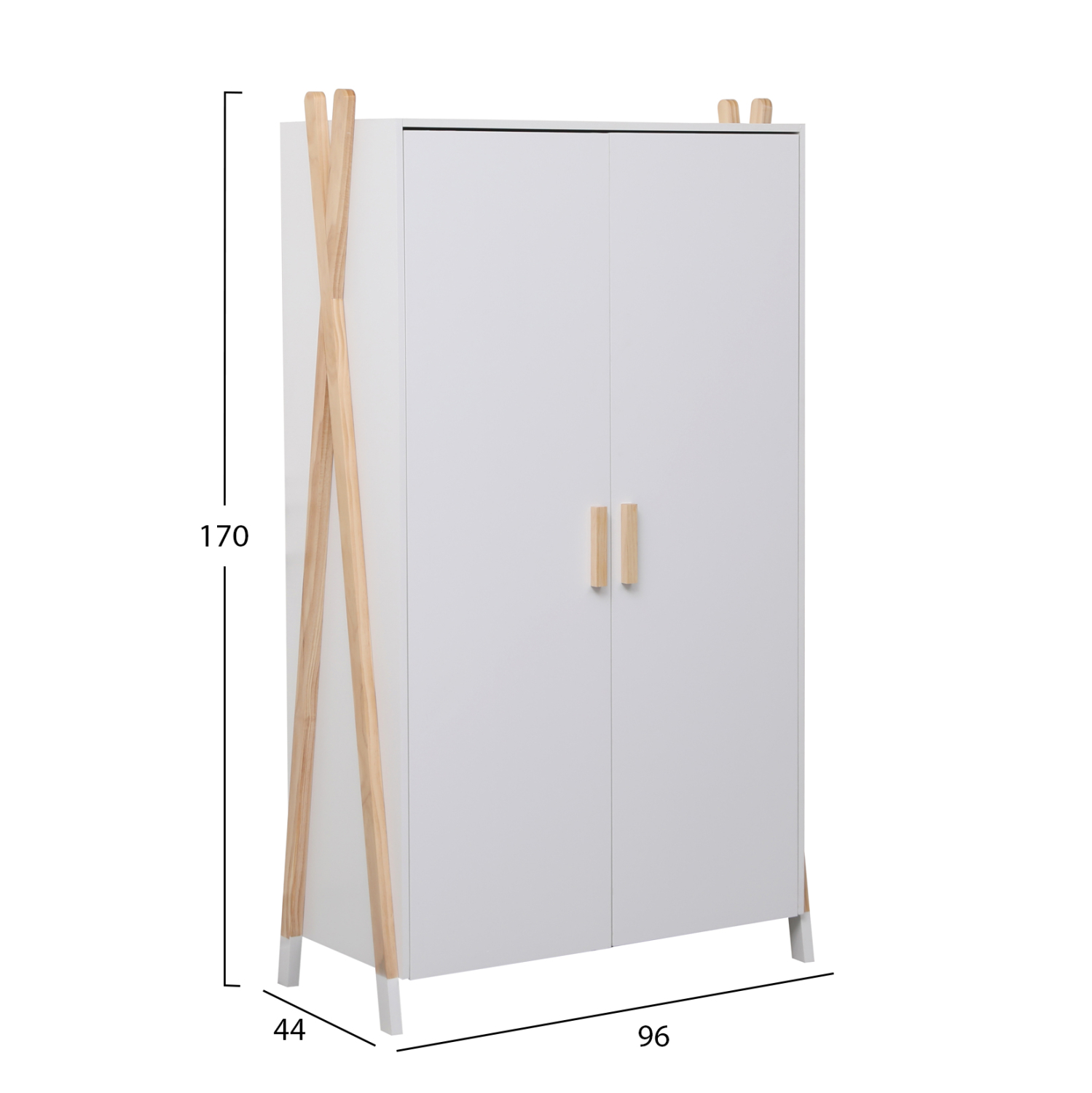 Σας παρουσιάζουμε την καινούργια παιδική (και όχι μόνο) ντουλάπα PASCHAL σε ΛΕΥΚΟ χρώμα. Είναι βολική σε διαστάσεις και διαθέτει 2 ράφια στο επάνω μέρος και μία μπάρα κρέμασης ρούχων από κάτω. Στηρίζεται σε δύο ξύλινα χιαστί πόδια σε ΦΥΣΙΚΟ χρώμα ξύλου στις δύο πλευρές. Είναι βαμμένο με αβλαβές βερνίκι με βάση το νερό και μη τοξικό, ιδανικό για παιδιά.