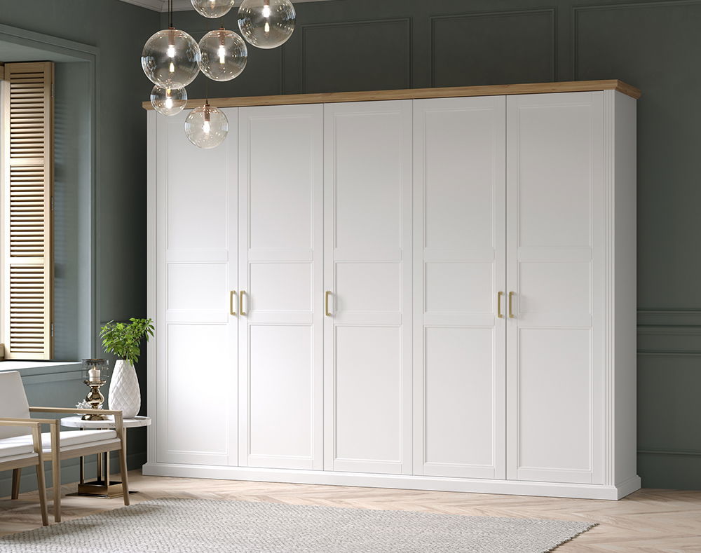 Πεντάφυλλη ντουλάπα Tahoma 5D, σε κλασικό σχεδιασμό που αποπνέει υψηλή αισθητική και μοντέρνες λεπτομέρειες που προσφέρουν μοναδικό design στον χώρο σας, ευρύχωρο αποθηκευτικό χώρο και πρακτικές διαστάσεις που την καθιστούν ιδανική για το υπνοδωμάτιό σας.