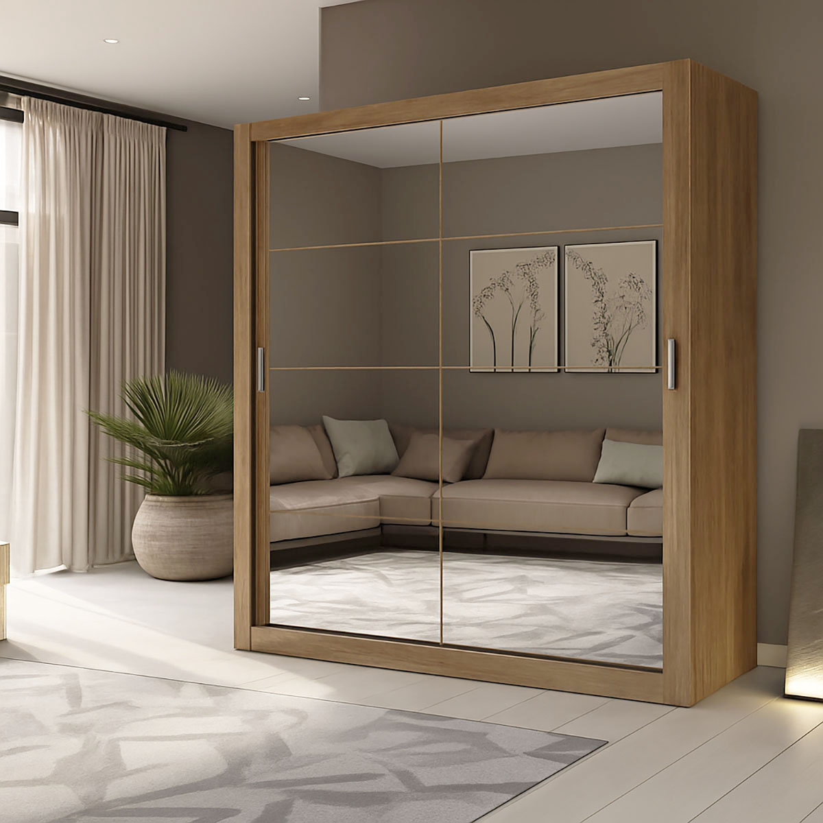 • Δύο συρρόμενες πόρτες με καθρέφτη,