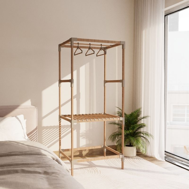 Ντουλάπα ρούχων ανοιχτή – Έπιπλο εισόδου ξύλινο – πλαστικό χρώμα φυσικό – μπεζ 75x46x156εκ.