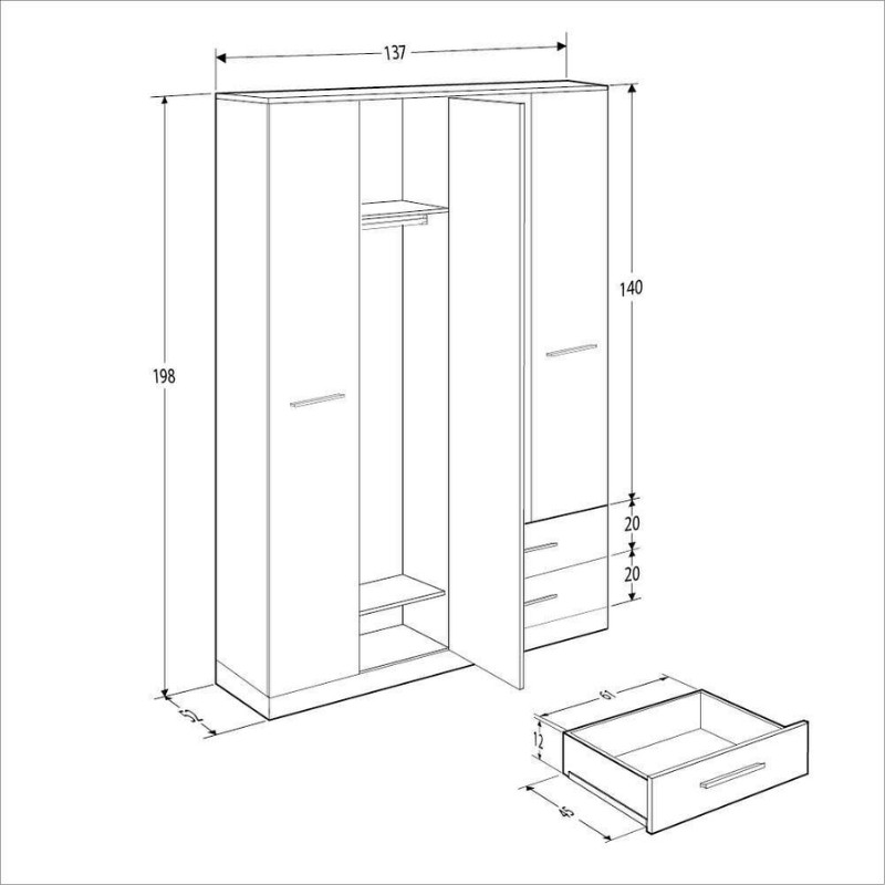 Ντουλάπα ρούχων Base Megapap τετράφυλλη από μελαμίνη σε χρώμα λευκό – sonoma 137x52x198εκ.