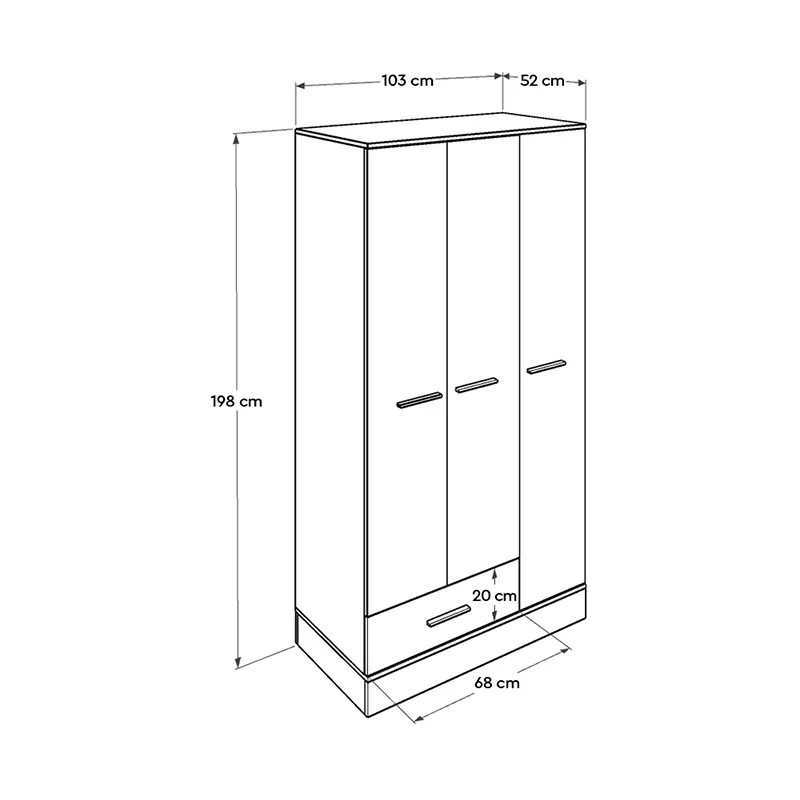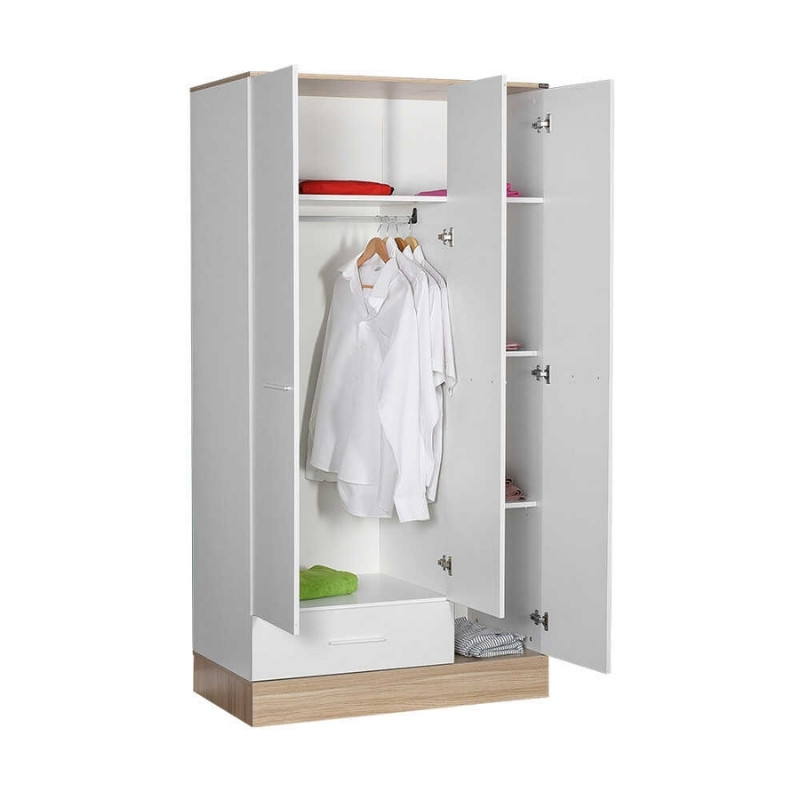 Ντουλάπα ρούχων Base Megapap τρίφυλλη από μελαμίνη σε χρώμα λευκό – sonoma 103x52x198εκ.